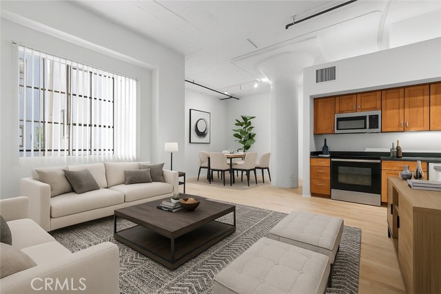 The live/work loft at Little Tokyo Lofts features a one-of-a-kind floor plan that offers defined living areas while maintaining the open loft aesthetic. Soaring ceilings, expansive windows, hardwood floors, and a remodeled kitchen, along with a large walk-in closet. The unit includes a refrigerator, washer, and dryer. Originally built in the 1920s as the historic Westinghouse Electric elevator factory, Little Tokyo Lofts was transformed into stylish condominiums in 2005. Residents enjoy resort-style amenities including a heated pool and spa, BBQ area, gym, dog run, 24-hour security, and secure parking with one assigned space plus guest parking in the garage.The community has a welcoming, small-town feel and is just a five-minute walk from the heart of Little Tokyo.