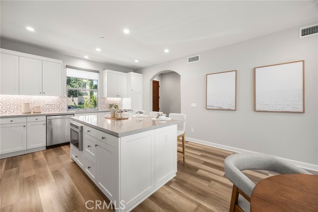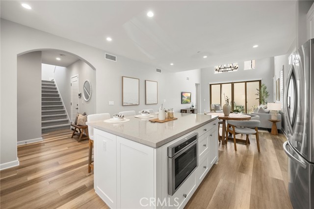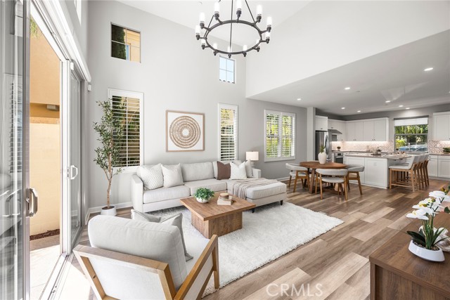 Set on a quiet street in Portola Springs, 113 Soaring Eagle offers a fully detached home within the private Talise community, featuring a true street-facing elevation and easy curbside parking right out front. Natural light fills the great room through large windows, complemented by soaring ceilings and an open layout. The kitchen includes white shaker cabinets, quartz countertops, a full tile backsplash, and Bosch stainless steel appliances, with sliding doors connecting the main living area to a fenced yard and patio. The floor plan provides four bedrooms, including a downstairs guest suite, while the upstairs primary suite features dual vanities, a soaking tub, and a separate walk-in shower with designer tile. Upgrades throughout include wide-plank waterproof laminate, tile, plush carpet, custom interior paint, and a 2-car garage with direct access, along with built-in energy-efficient features. The home is served by Irvine Unified schools, with Loma Ridge Elementary within walking distance and convenient access to Jeffrey Trail Middle School and Portola High, plus nearby community pools, parks, and scenic walking trails. 113 Soaring Eagle offers a turnkey home in one of Irvine’s most desirable neighborhoods.