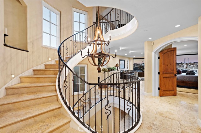 Poised within an elite location on the prestigious Balboa Peninsula is a grand estate perfectly situated on the bay. The design of the estate exudes luxury as you are greeted by the Tuscan inspired architecture. An immense 5,000 square feet, each level is thoughtfully designed and flows seamlessly from room to room. Main level holds towering glass doors that open directly to the waterfront and enhances the entire indoor/outdoor flow. A gorgeous spiral staircase takes you from floor to floor while the private elevator adds additional convenience. This property offers direct access to harbor recreation and is walking distance from shopping and dining. Private boat slip allows for direct entry onto the water from home while the private waterfront is perfect for unwinding. This estate brings in a resort like comfort, all whilst boasting an old world charm.