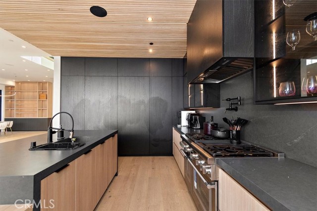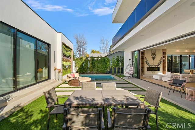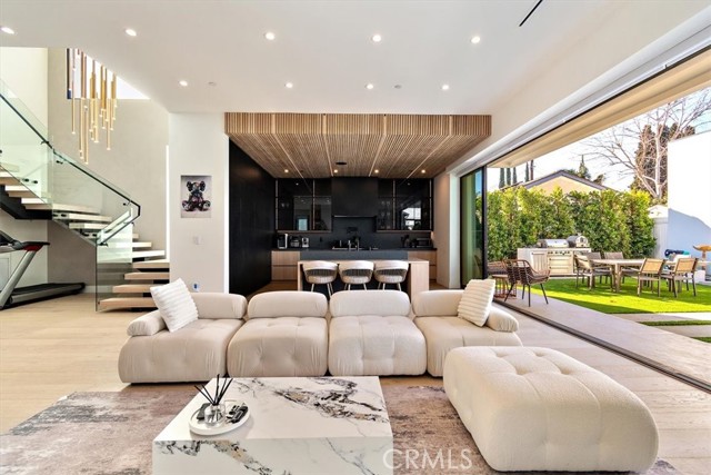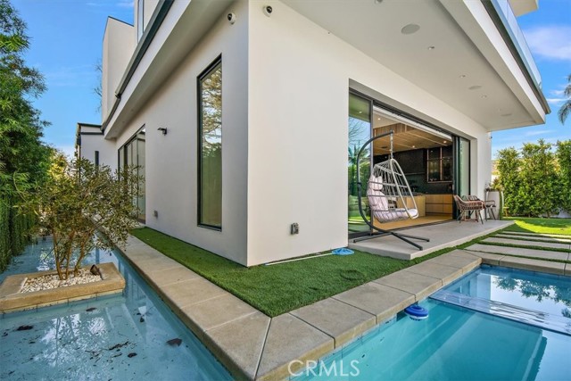 This newly constructed residence epitomizes elevated contemporary living, featuring 4 bedrooms and 4 full bathrooms in the main home, plus a detached 1-bedroom, 1-bath ADU—perfect for guests, extended family, or flexible use. Floor-to-ceiling glass and an open-concept layout flood the interior with natural light, creating a warm, inviting atmosphere. At the heart of the home is a designer chef’s kitchen, a true showpiece with top-of-the-line integrated appliances and a Silestone center island ideal for entertaining. The kitchen flows seamlessly into the expansive living room, where a 24-foot multi-panel sliding glass door opens to the backyard and central courtyard, blending indoor and outdoor living. The main level also offers a formal dining room and an ensuite bedroom. Upstairs, three spacious bedrooms include a luxurious primary suite with a custom walk-in closet and spa-inspired bath featuring a soaking tub, rainfall shower, and double vanity. A convenient laundry room and two additional full bathrooms complete the upper level. The fully detached ADU includes its own private entrance, a generous living area with kitchenette, full bath, and a separate bedroom—ideal as a guest house, office, gym, or income-producing unit. Outside, the backyard serves as a private oasis with an architecturally stunning pool, living wall, stainless steel Monti Alpi 400 Deluxe natural gas grill, low-maintenance turf, and ample patio space for dining and lounging. Additional highlights include soaring ceilings, a full smart-home system with integrated speakers, Lutron lighting, a robust security system, and a sleek two-car garage with EV charging. Ideally located near Westfield Fashion Square, Ventura Boulevard’s premier shopping and dining, and within the sought-after Kester Avenue Elementary district.