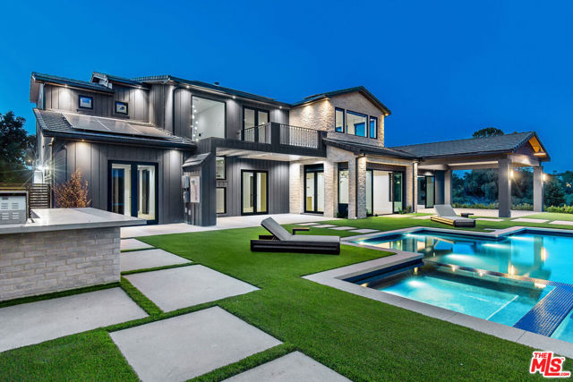 Welcome to your dream home in the prestigious guard-gated community of Hidden Hills. This brand-new construction embodies modern farmhouse glamour, offering unparalleled luxury, privacy, and breathtaking panoramic views. Perched on its own private driveway, set back from the main street, this exquisite estate ensures a serene and exclusive living experience.Boasting 5 spacious bedrooms and an additional office that can easily serve as a sixth bedroom, complete with its own full bath, this home is designed to accommodate both family and guests with ease. The expansive open living spaces are flooded with natural light, creating a warm and inviting ambiance perfect for both relaxation and entertaining.The modern kitchen is a chef's delight, featuring a large island with waterfall stone, top-of-the-line appliances, and custom built-ins. Whether you're hosting a gourmet dinner party or enjoying a quiet family meal, this kitchen provides the perfect backdrop for culinary creativity.Every aspect of this home is infused with cutting-edge smart home functionality, ensuring that convenience and comfort are always at your fingertips. From lighting and climate control to security and entertainment systems, everything can be effortlessly managed with the touch of a button.Step outside to discover your own private oasis. The zero-edge pool, complete with an extended Baja shelf, invites you to indulge in ultimate relaxation while taking in the stunning vistas. Surrounding the pool, you'll find ample seating and a lush grass pad, perfect for lounging or playing. The covered patio casita offers an ideal spot for outdoor dining and entertaining, providing a seamless blend of indoor and outdoor living.Experience the pinnacle of luxury living in Hidden Hills, where every detail has been thoughtfully crafted to offer you the best in modern elegance and sophisticated comfort. This is more than just a home; it's a lifestyle. Welcome to your sanctuary.