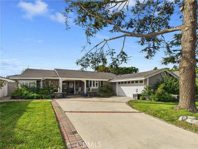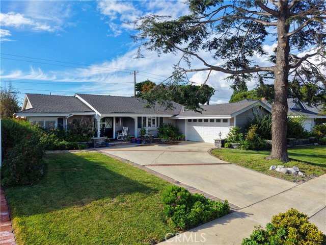 Welcome to this beautifully remodeled single-story home in the heart of Mesa Verde. Situated on a spacious lot that backs to the open fields of Adams School, this 3-bedroom, 2-bath residence offers 1,796 sq ft of bright and airy living space. Inside, a generous living room welcomes you with rich hardwood floors and a cozy wood-burning fireplace. The stunning chef’s kitchen blends style and functionality with granite countertops, custom cabinetry, a large island, oversized refrigerator/freezer, electric range, and dishwasher. Extensive built-in storage throughout the kitchen, laundry room, hallway, and garage ensures effortless organization. The primary suite features hardwood flooring, abundant storage—including an expanded walk-in closet—and a private en-suite bath. The secondary bedrooms and bath are equally inviting, offering tile finishes and an abundance of natural light. Double-paned windows with plantation shutters fill every room with warm coastal sunshine. Outside, the expansive lot provides a two-car garage with ample storage, plus additional driveway parking. Charming double doors invite refreshing ocean breezes, while the spacious backyard offers plenty of room for entertaining, gardening, or play. Move-in ready and meticulously maintained, this home pairs comfort and style in one of Costa Mesa’s most sought-after neighborhoods. Close to Mesa Verde Country Club, scenic bike trails, golf courses, shopping, and dining, it offers a peaceful, walkable community with convenient access to everything you need.