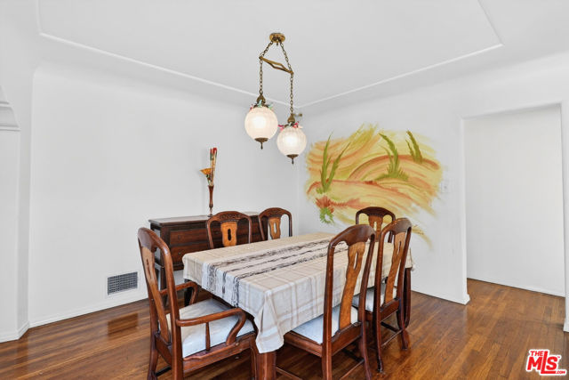 Welcome to this charming Spanish home in the heart of highly desirable Faircrest Heights, one of Los Angeles' most sought-after and quickly growing neighborhoods. Situated on an exceptionally quiet street, this beautifully laid-out residence offers 2,090 sq.ft. of living space on an expansive 8,500 sq.ft. lot with endless potential. Step inside through the welcoming foyer and into a spacious living room filled with character. The large formal dining room flows into a bright and inviting breakfast area, perfect for everyday gatherings. The home also includes a separate laundry room with exterior access and a generous powder room. All three bedrooms are impressively large, including a primary suite with an en-suite bathroom, abundant closets, and additional walk-in closets for exceptional storage. With two and a half bathrooms total, the home offers both comfort and functionality. The expansive backyard is a true highlight- private, peaceful, and full of possibilities. Whether you're envisioning lush landscaping, outdoor entertaining, or future expansion, the space invites you to add your own personal touch and transform it into something truly beautiful. A bonus room, currently used as flex/storage space, can be easily converted into an ADU. A two-car driveway provides convenient off-street parking. Ideally located close to the vibrant Pico corridor with its shops, restaurants, and places of worship, this home presents a rare opportunity to customize and create your dream property in an unbeatable Faircrest Heights location.