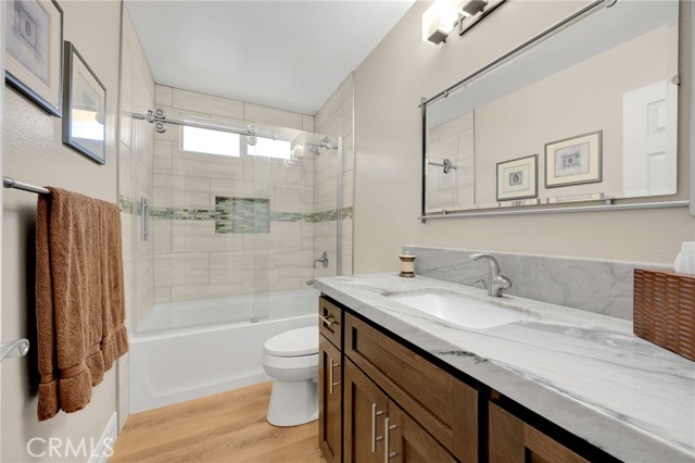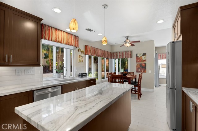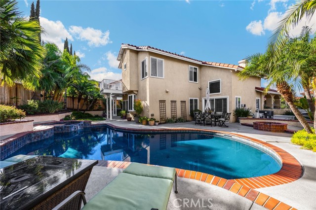 Spectacular Chino Hills Home with Saltwater Pool & Spa. Experience timeless architecture and modern luxury in this beautifully updated Chino Hills residence. A private, picturesque courtyard welcomes you into an elegant yet casual floor plan designed for both everyday living and effortless entertaining. The gourmet chef’s kitchen features a center island, professional-grade stainless steel appliances, and sleek quartz countertops, opening to a warm and inviting family room with a fireplace—perfect for gatherings and entertaining. This home offers approximately 2,700 sq. ft. of living space, including 4 bedrooms plus a spacious loft with a fireplace, easily converted into a 5th bedroom. A desirable downstairs bedroom with double-door entry, located adjacent to a bathroom with a shower, offers exceptional flexibility—ideal for in-law quarters, guests, or a private home office. The gorgeous primary suite is a true retreat, featuring a sitting area, private balcony, and an updated spa-inspired bath with a walk-in shower and soaking tub. Large windows throughout the home showcase beautiful views of the lush, professionally landscaped grounds. Step outside to your private sanctuary where a sparkling saltwater pool and spa are surrounded by multiple lounging areas, a grassy yard, and serene landscaping—perfect for relaxation or entertaining. Extensive upgrades include a newer roof, upgraded fencing, dual-pane windows, remodeled kitchen and baths, updated flooring, plantation shutters, new fixtures, enhanced attic insulation, and more—too many to list. Homes like this are rare—don’t miss the opportunity to make it yours.