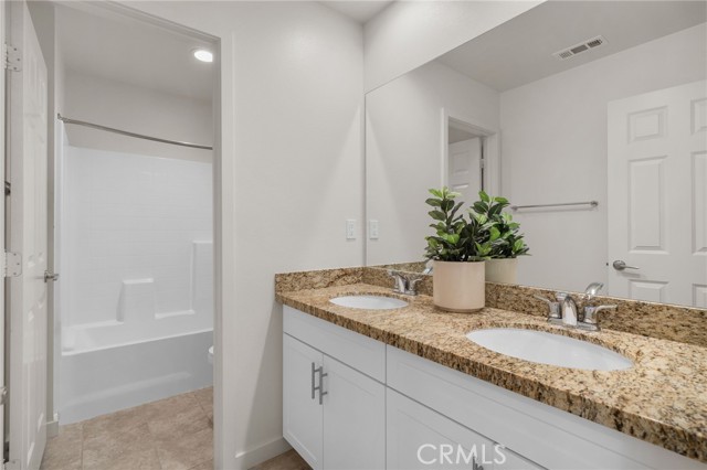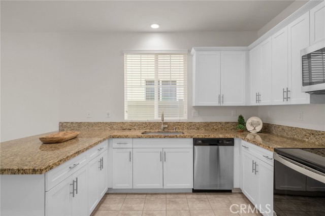 Welcome to this adorable, newer home located in the charming Collette Crossings community—an intimate HOA of just 34 homes. With exterior front maintenance included, effortless living begins the moment you arrive. The home features a two-car attached garage with rear entry access, offering privacy and convenience. Step inside to a bright, open floor plan with tile flooring throughout the main level. The spacious family room, dining area, and kitchen flow together seamlessly, highlighted by a beautiful custom wood feature wall that adds warmth and character. The kitchen offers granite counters, a peninsula for additional seating, bright white cabinetry, stainless steel appliances, and window blinds for controlled natural light. A stylish powder bathroom—also finished with a custom wood accent wall—completes the main floor. Upstairs, you’ll find soft carpeting, fresh white walls, and a true blank canvas ready for your personal touch. A convenient upstairs laundry room offers abundant cabinetry for storage. The primary bedroom features a ceiling fan, window blinds, a large walk-in closet, and an ensuite bathroom with dual sinks, granite counters, a soaking tub, and a walk-in shower. Three additional bedrooms provide ample space, along with a secondary bathroom featuring dual sinks and granite counters. There is also a perfect homework or study niche upstairs—ideal for work, reading, or crafts. The low-maintenance back patio is fully cemented, clean, and ready for outdoor seating or entertaining. The Collette Crossings neighborhood offers beautiful landscaping, a barbecue and picnic area, and a shaded playground for residents to enjoy. All of this in a fantastic location just off La Sierra Avenue, close to shopping, dining, and commuter routes. This home feels nearly brand new and is the perfect blend of comfort, style, and convenience.