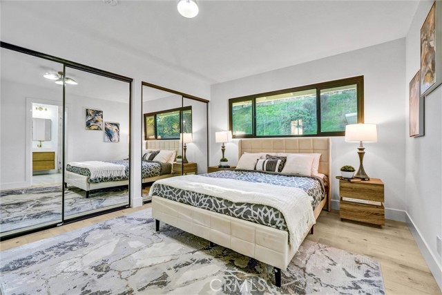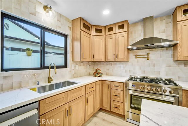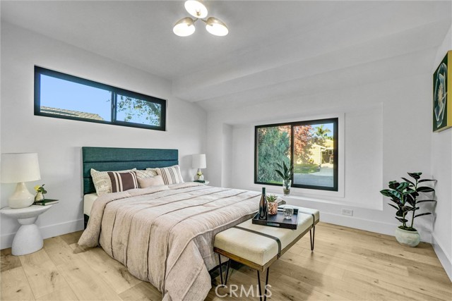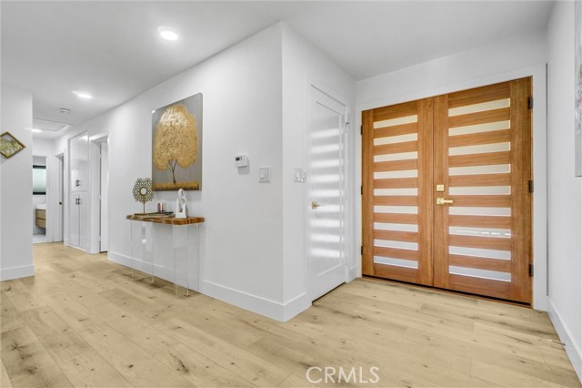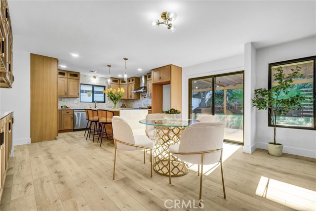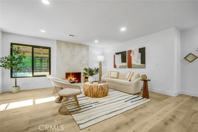 Welcome to your dream home in the prestigious Olive Hills community, where sophistication meets comfort in this meticulously crafted residence. Step through the striking double-door entry adorned with modern walnut doors and discover 1,471 square feet of thoughtfully designed living space featuring luxurious light oak vinyl flooring throughout. The heart of this home showcases a gourmet kitchen that would make any culinary enthusiast swoon, boasting gleaming quartz countertops, premium stainless steel appliances, and elegant light oak shaker cabinets that provide abundant storage for all your kitchen essentials. The adjacent living room creates an inviting atmosphere with its stunning porcelain-clad fireplace, perfect for cozy evenings and entertaining guests. This three-bedroom, two-bathroom sanctuary offers spacious accommodations, including a primary bedroom retreat featuring convenient mirrored wardrobe doors and an attached bath complete with a freestanding tub for ultimate relaxation. The additional bedrooms also feature mirrored wardrobe doors, maximizing both storage and natural light reflection. Contemporary touches abound with recessed lighting and brushed gold hardware adding warmth and elegance throughout. The attached two-car garage provides secure parking and storage, while the expansive yard offers endless possibilities for outdoor enjoyment and includes a separate workshop or office space for those work-from-home needs. Located near excellent schools, beautiful parks including Eisenhower Park, convenient shopping at Vons, and public transportation options, this home perfectly balances tranquil residential living with urban accessibility. Don't miss this opportunity to own a slice of Orange County paradise.