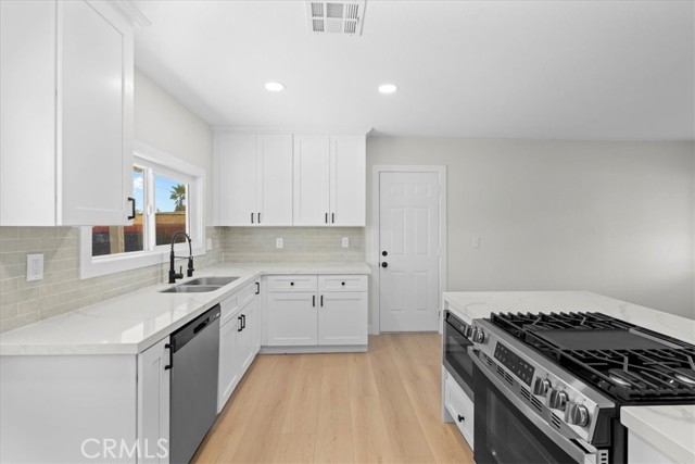 Welcome to this beautifully remodeled and fully turnkey home in the heart of Fontana! Sitting on a spacious lot with possible RV parking, ADU potential, and plenty of room to expand, this property offers exceptional flexibility and value. Enjoy stunning snow-capped mountain views from your front porch and a fully fenced front yard with new landscaping. Inside, the home feels brand new. Major upgrades include a new roof, new HVAC system, new dual-pane windows, new tankless water heater and new wood-look flooring throughout. The bright, open kitchen showcases white shaker cabinets, quartz countertops with a bar overhang, and all-new stainless steel appliances, including an in-cabinet microwave drawer. New designer finishes throughout The bathroom has been completely updated with a modern vanity topped with quartz and a beautiful designer-tiled shower. Additional conveniences include indoor laundry and an attached garage. Best of all, this property is one of the lowest-priced remodeled, move-in-ready homes in the area—a rare opportunity to own a fully upgraded home at an incredible value. Don’t miss it!