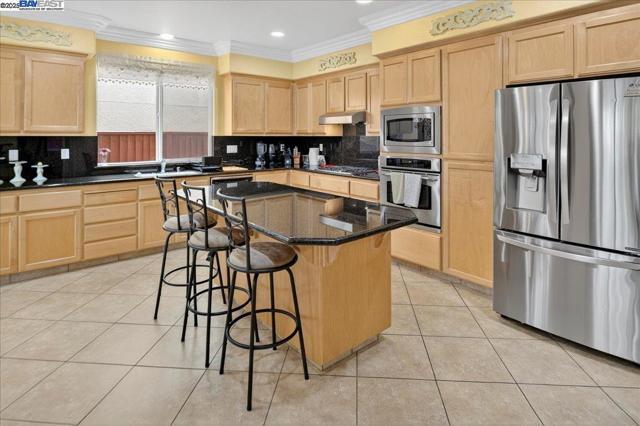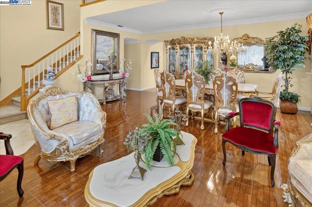 This Magnificent 2005-built residence in Richmond's Park Ridge community, spans 3,446 sq ft of luxurious living space on a generous 0.1-acre lot. 5 spacious bedrooms and 4 elegantly appointed bathrooms, this home is a perfect sanctuary for anyone seeking privacy and sophistication. Step inside to an open-concept floor plan flooded with natural light, featuring a gourmet kitchen with granite countertops, stainless steel appliances, and a large island ideal for entertaining. The expansive living and dining areas flow seamlessly to an outdoor patio, where breathtaking gulf views unfold—watch the sun set over the shimmering waters of San Pablo Bay from your private vantage point. Multiple living spaces include a formal dining room, cozy family room with two-way fireplace, and a versatile bonus area perfect for a home office or gym. Upstairs, the primary suite is a true retreat with a spa-like en-suite bath, walk-in closet, offering panoramic gulf vistas. Four additional bedrooms provide ample space, two with access to well-designed bathrooms. Modern touches abound; tile floors, crown molding, recessed lighting, and energy-efficient windows maximize the coastal charm. Minutes from Wildcat Canyon Regional Park for hiking, Hilltop Mall for shopping, and easy commutes to Oakland & SF.