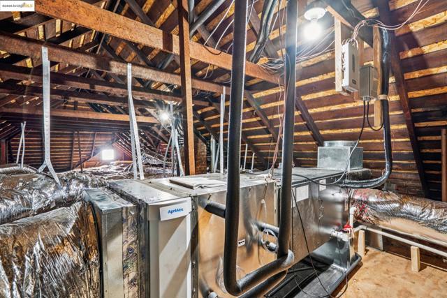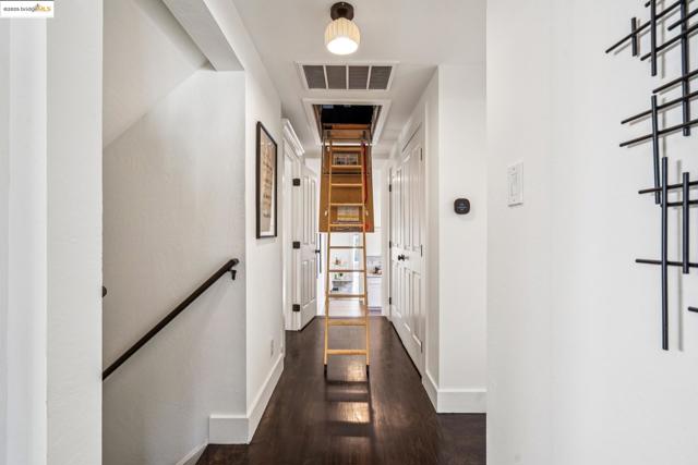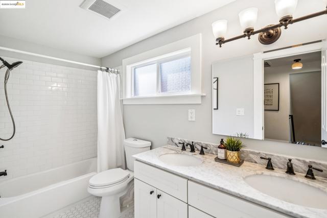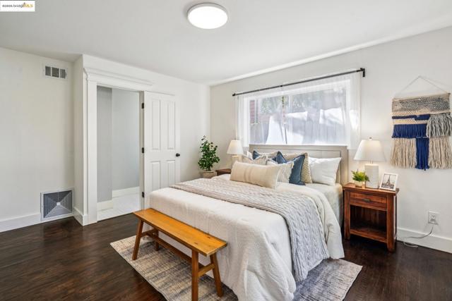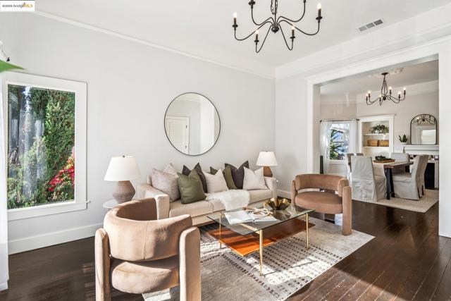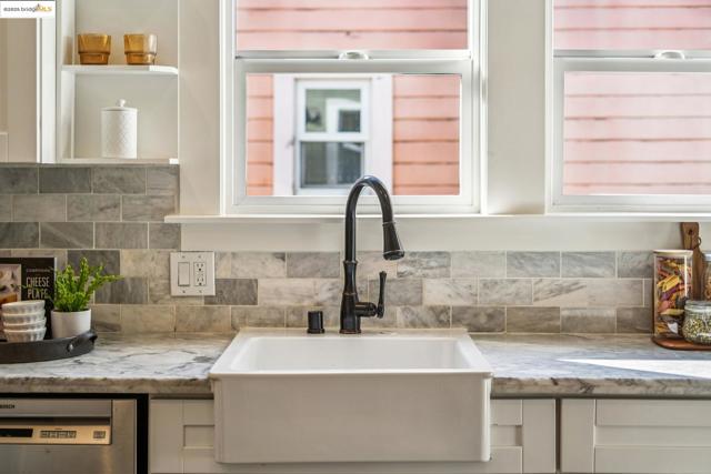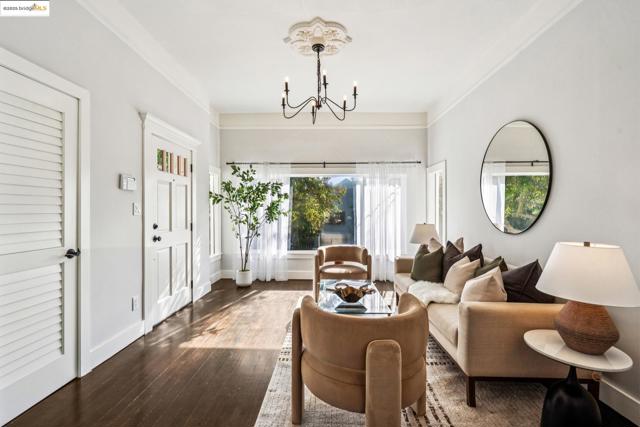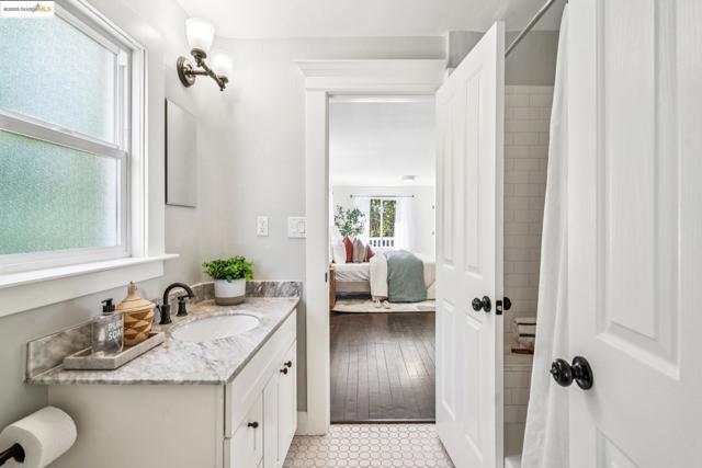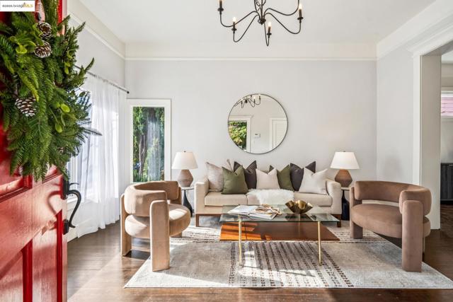 Enjoy this spacious Victorian updated for modern comfort, flexible living, and timeless character on a tree-lined street. With approx. 2,308 sq. ft. this 4++ bed, 2.5 bath home blends classic detail & contemporary ease. Built in the Queen Anne style, the façade & covered porch open into living and dining rooms with tall ceilings over fir floors. Bright & inviting, these connected spaces charm with chandelier rosettes and a decorative hearth. The sizable kitchen -ideal for chefs- is the home’s hub. Shaker cabinetry, large pantry, SS appliances, farm sink and ample marble counters complete the space. The primary bedroom serves as a generous retreat, sharing an ensuite bath with a large hall bedroom. A short stair up leads to twin bedrooms overlooking the yard, adjacent to a hall bath w/ double vanity. The lower level offers expansive bonus space: a family room w/ sliding doors to the patio, a guest suite w/ 1/2 bath & an office. Access to the attached garage is through the laundry, utility, & storage rooms; all potential areas for gym, workshop, or ADU expansion (buyer to verify). Recent updates incl. new HVAC, thermal battery & hot water system, partial insulation, sewer compliance, EV charger & off-street parking. Near Emeryville, Berkeley, Cafes, Shops & major commuter routes.