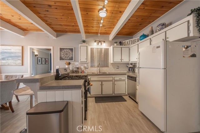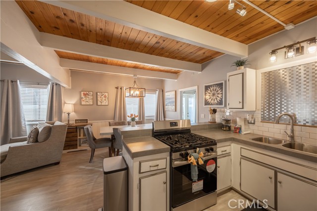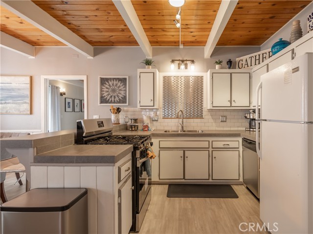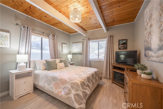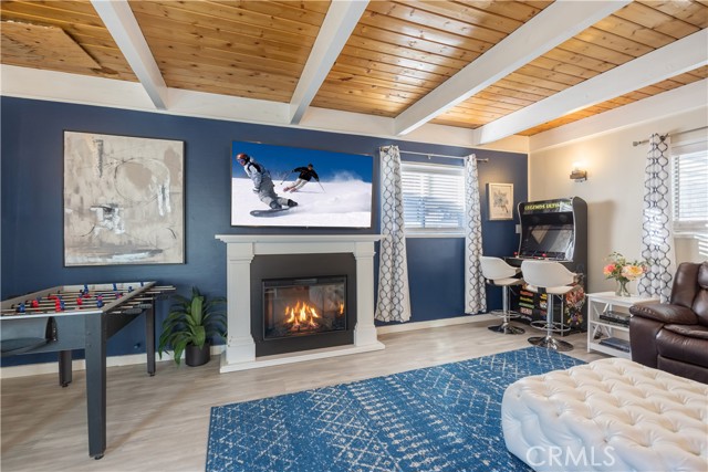 Experience elevated mountain living in this beautifully remodeled two-story Big Bear retreat. Thoughtfully designed with comfort and style in mind, this home offers a warm lodge ambiance blended with modern finishes, including granite countertops, stainless steel appliances, updated baths, and multiple electric fireplaces throughout. The open living area features rich wood accents, a traditional wood-burning fireplace, and seamless flow into the kitchen and dining spaces — great for entertaining or simply unwinding after a day on the mountain. Upstairs includes well-appointed bedrooms plus versatile bonus rooms, perfect as an office, lounge, or flex space. Step outside to a fenced backyard oasis complete with a hot tub, gas fire pit, BBQ area, and ambient patio lighting — creating a peaceful setting for year-round enjoyment.