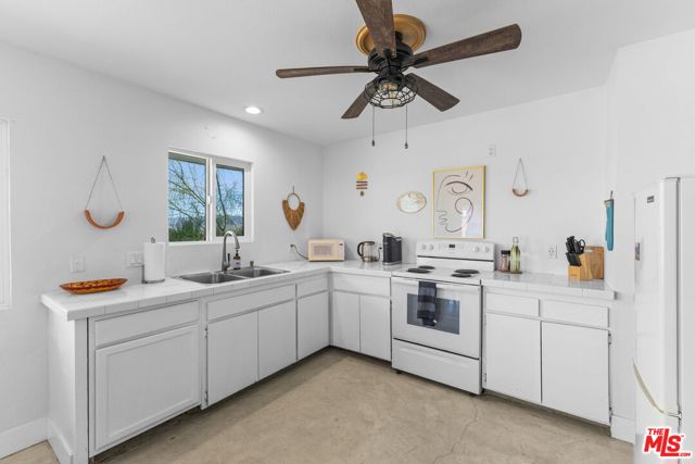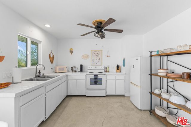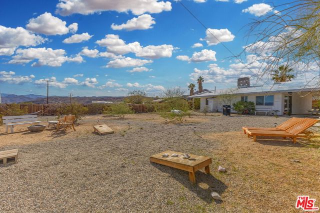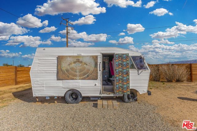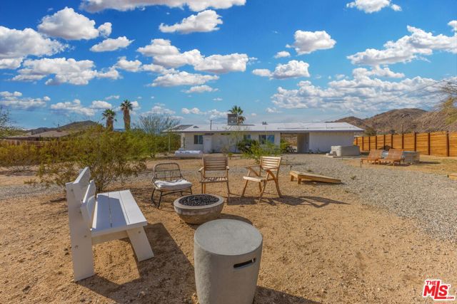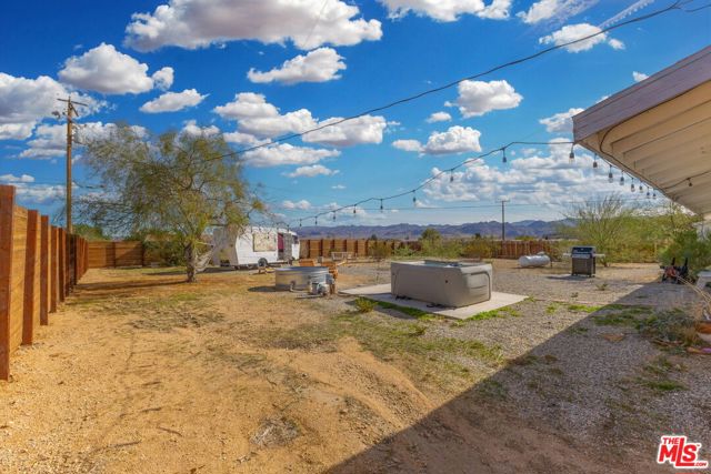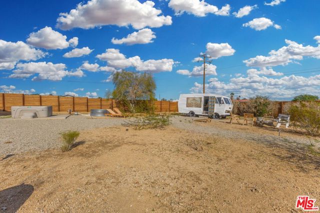 Look no further this is it! Experience breathtaking, unobstructed mountain views from this thoughtfully designed desert retreat truly a property you must see in person. Completely furnished and effortlessly stylish, this two-bed, two-bath home offers updated kitchens and bathrooms, sleek indoor concrete floors, and an easy-to-maintain layout ideal for a primary residence, second home, or high-demand short-term rental.Set on a sprawling, fully fenced half-acre lot, the property provides exceptional privacy while maximizing panoramic views of the surrounding landscape. Multiple outdoor hangout areas invite you to relax and entertain, whether you're soaking in the above-ground spa, cooling off in the cowboy tub, gathering around the firepit for late-night conversations, eating at one of the 2 covered patios, or enjoying the extra bonus hangout space inside the included eclectic RV. The home sits just minutes from restaurants, shops, and all the iconic attractions Joshua Tree has to offer yet feels worlds away from the bustle. A perfect blend of desert serenity and modern comfort, this unique property is ready to welcome its next owner. Broker and agents do not represent or guarantee the accuracy of the square footage, income, expenses, condition,development potential, bedroom/ bathroom count, lot size or lot lines, dimensions, permitted or nonpermitted spaces, or school eligibility. Buyer is advised to independently verify the accuracy of all information with appropriate professionals. There are no warranties or guarantees, buyer to rely solely on his/her/their own findings.