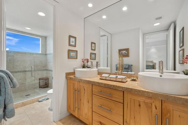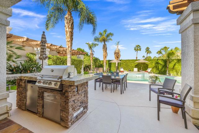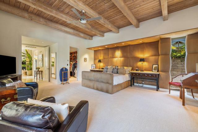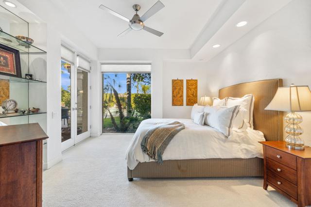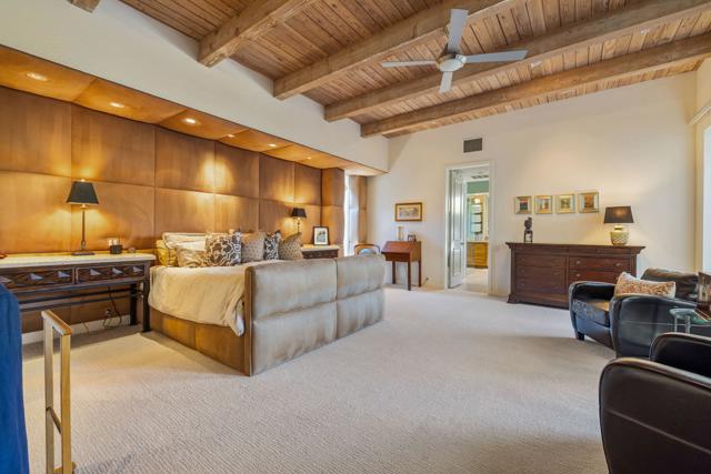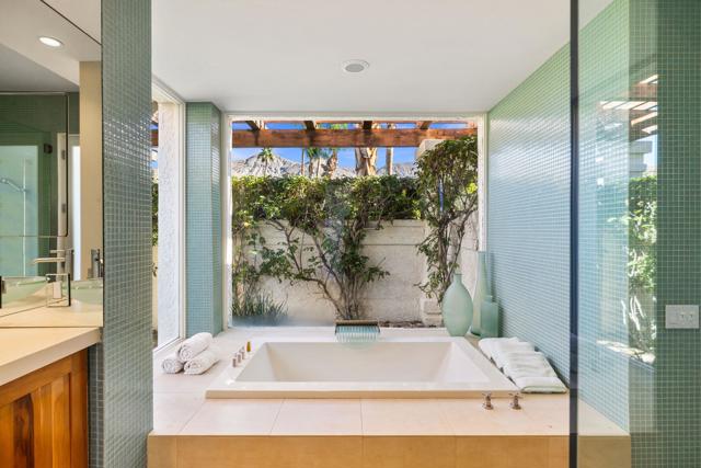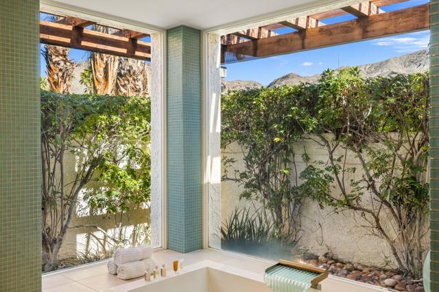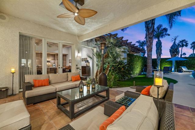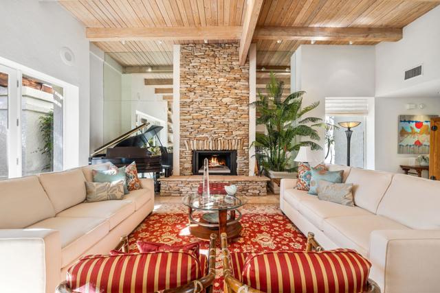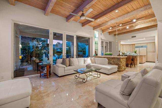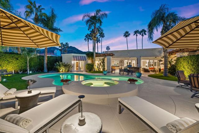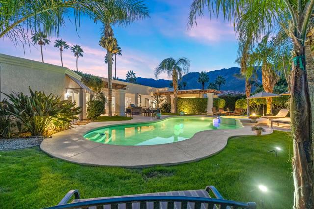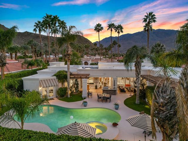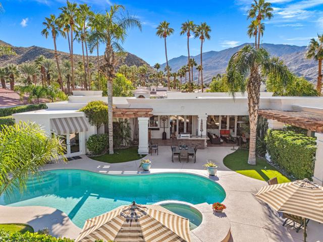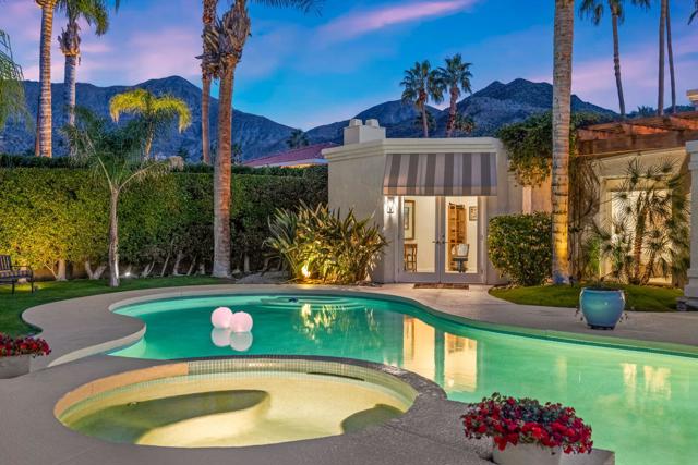Enjoy the casual but elegant Palm Springs lifestyle in the coveted gated community of Parc Andreas at this spectacular home. The former home of celebrity author Andrew Neiderman, bestselling author of 38 suspense novels including 'The Devil's Advocate', offers 3 bedrooms and 4 baths in 4236 sq ft of renovated living space. The spacious open floor plan offers separate conversation and functional areas that integrate and easily flow from Livingroom to Dining room, Kitchen and outdoor entertaining areas creating that perfect indoor/outdoor living environment. Outdoor amenities include beautiful pool/spa that is surrounded by a privacy hedge and stellar views of the San Jacinto and Santa Rosa Mountains. A spacious primary bedroom suite features custom walk in closet and spa like bath with stunning glass tile, spacious shower, soaker tub and direct outdoor access. Two guest bedrooms with en-suite baths and each with outdoor patios. One of them even has a bonus room which could be used as gym or part of a separate entrance casita. Originally a 3 car garage, one bay has been converted to office with extensive built-ins but would easily convert back to garage bay. Schedule your private showing today!