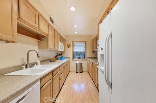 Back on market 11-28-25 buyer didn't qualify (was sold for $565,000): Here's a rare opportunity to own a beautiful townhome located in a desirable private gated community. Welcome to peace and serenity viewing a nice greenbelt in a quiet setting of park-like grounds. The open floor plan has vaulted ceilings, updated kitchen with newer counters, a fabulous primary suite with a walk-in closet, private bath + a large balcony for relaxation. Also, unit has newer AC, heat and ductwork. Double attached side by side 2 car garage and allows direct entry into the unit. The complex offers well-kept grounds, greenbelts, sparkling pools, children’s pool, playground, clubhouse, pet friendly + more. You will enjoy a premiere location, convenient to major transportation routes, hospitals, schools, CSUN (Calif. State University Northridge), freeways, restaurants + more. Enjoy the ideal combination of comfort, functionality, and lifestyle in this inviting townhouse.