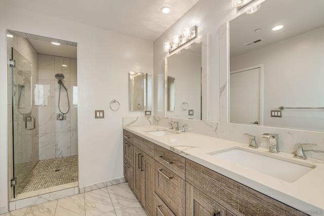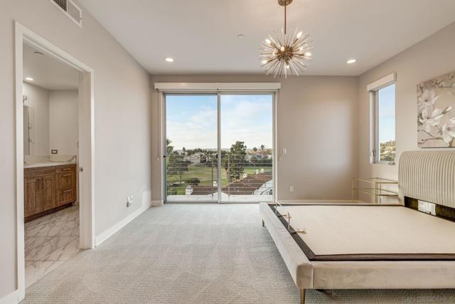 Luxury townhome in La Costa, Carlsbad, directly across from the iconic Omni La Costa Resort & Spa, once favored by the Hollywood Rat Pack. Built in 2017, this elegant residence offers breathtaking 180-degree views of the lush golf course and La Costa hills, with a rooftop deck showcasing stunning panoramas stretching toward the Pacific Ocean. Less than five miles from the beach as the crow flies and just a 10-minute drive to the Carlsbad and Encinitas coastlines, it perfectly blends resort-style and coastal living. This four-story home features 4 bedrooms and 3.5 baths, including a spacious primary suite with large ensuite bathroom and a California Closets walk-in. A full bedroom with private ensuite bath on the first floor is ideal for guests or multigenerational living. The approx. 350 sq. ft. rooftop level provides exceptional outdoor space for relaxing, entertaining, and taking in the views. Interior upgrades include fresh paint, designer carpet in bedrooms, luxury vinyl flooring in common areas, premium window shades, recessed lighting, and a dining room chandelier. The kitchen features a stainless KitchenAid package, counter-depth refrigerator, and high-end Puronics whole-house water filtration with reverse osmosis. Smart home features include USB fast-charging outlets in every room, dimmer-controlled lighting, central vacuum, and an EV charging outlet in the attached two-car garage. Washer, dryer, and central AC included. An exceptional opportunity in one of Carlsbad’s most desirable locations.