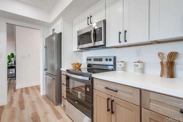 Welcome to this Charming Single-Story Condo in Oceanside's coveted 55+ Oceana complex! No need to take stairs or elevator to access this unit! Unit is located on same level as the entrance to the complex and also same level as the parking structure. Delightful 2-bedroom, 2-bathroom condo nestled in a gated community. Fantastic mountain VIEWS make this property a truly remarkable home. Updated Kitchen: Equipped with shaker style cabinets, quartz countertops and modern stainless steel appliances. The primary suite is spacious and comes with an en-suite bath that's freshly updated! There is a second bedroom and a full second updated bath! You will have 2 assigned parking spots! In-Unit Laundry is a huge plus! The complex provides gated covered parking, storage, a community pool specific to the building and elevators in the building. The Oceana features resort-style living with beautifully maintained grounds, pool, spacious lounge area and community activities and is retirement living at its finest. Don't wait, make this your new home!