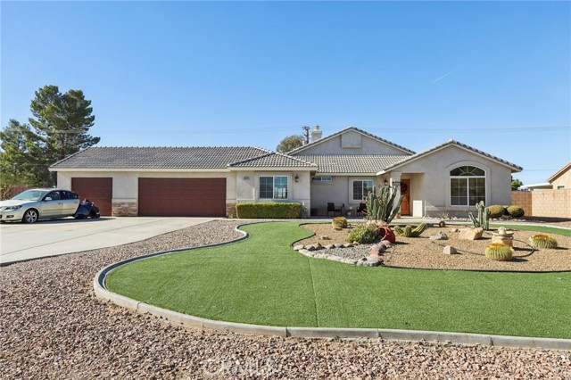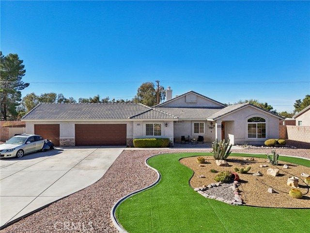 This beautifully maintained single-story home offers incredible curb appeal with its impressive desert rock landscaping and a spacious three-car garage with RV potential. Featuring 5 bedrooms and 3 full baths, this thoughtfully designed split floor plan is ideal for multiple-family living or creating a comfortable work-from-home setup with plenty of privacy and flexibility. Step inside to an inviting open-concept kitchen and family room, creating a true great room perfect for gatherings. The cozy family room is highlighted by a stunning rock fireplace, soaring high ceilings, and abundant natural light. All bedrooms are generously sized, offering comfort and versatility for any lifestyle. This home is in great overall condition, needing only minor touch-ups and fresh paint to make it shine like new. With so much potential and priced to sell, this is the perfect opportunity to make Apple Valley living your own. Don’t miss your chance—bring your best offer!