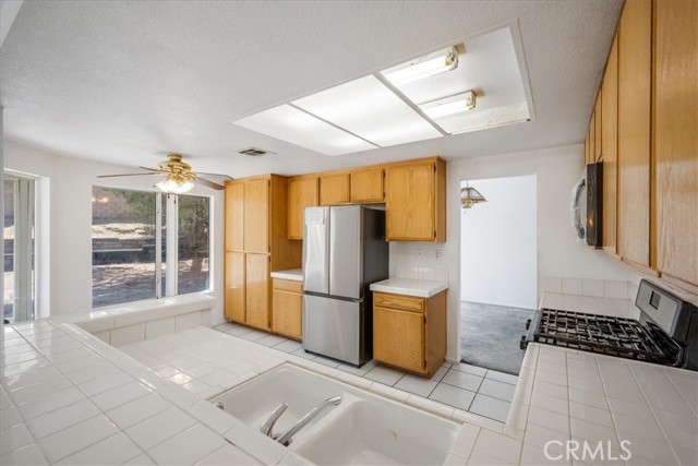 Must See! It features fresh paint inside and out, new carpet, and a new water heater, as well as kitchen appliances that are included in the purchase. Property has an outstanding family room, oak entry & stair rail, vaulted ceiling in living and dining area, country kitchen with casual dining & breakfast bar, gas log fireplace, indoor laundry, mature landscaping, the main bedroom has 11x23sqft deck with sliding glass door access with panoramic views of the mountains, 3-car garage with pass-through garage door for backyard parking or access: 12'x42' RV access, huge lot for entertaining or gardening.