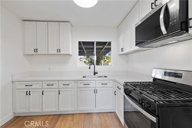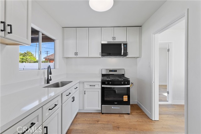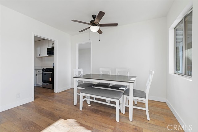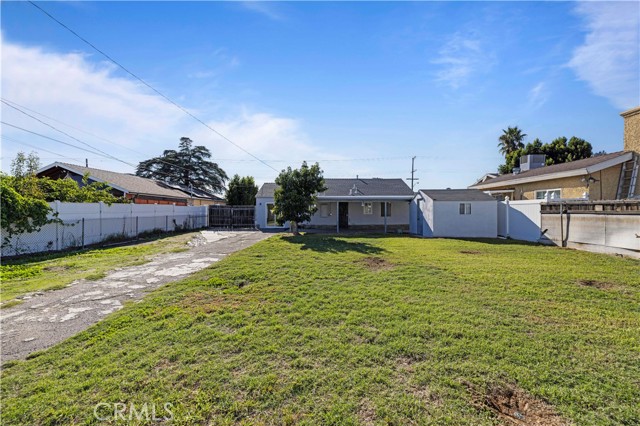 Tucked behind a freshly painted exterior and a bold colored stamped driveway, this fully remodeled home is the kind of opportunity buyers wait years for. Step inside and feel the difference—eco-engineered wood laminate floors flow wall-to-wall, guiding you through an open living and dining space that leads into a true family room (could be 3rd bedroom) w/ new sliding door built for gathering. The kitchen shines with brand-new cabinets, quartz countertops, modern fixtures, and new appliances, while the remodeled bathroom stuns with a designer tile shower, new vanity, fixtures, and window. Big bedrooms feature ceiling fans throughout for comfort year-round. Off the kitchen, a dedicated laundry room includes a pantry and a new water heater for added function. Outside is where the story gets exciting—an enormous fully fenced rear yard with a huge covered patio, custom powered storage shed, and direct front, rear and RV access (parking). The lot is ideal for multiple ADUs and/or future home expansion. With a new roof, fresh interior and exterior paint, updated landscaping front and back, and true turn-key condition, this home is perfect for first-time buyers, multi-generational living, or investors ready to maximize returns. Close to schools, shopping, dining, and the 5 Freeway—this one checks every box. Opportunities like this don’t wait. Neither should you.