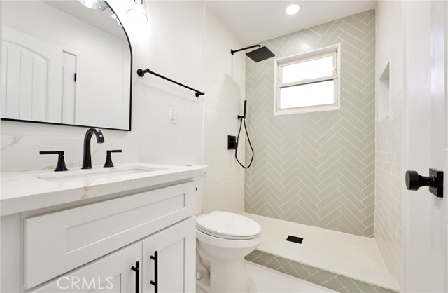 Remodeled single story Bloomington home. New roof. Recessed lighting. White kitchen cabinets with quartz counter tops. New tiled shower. New vinyl floors throughout. Attached two car garage. Spacious front and huge back yard with sheds. Lots of parking. Lovely neighborhood. Quick move in.