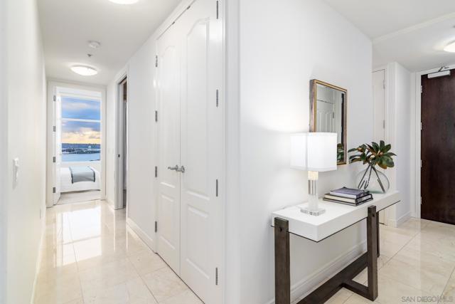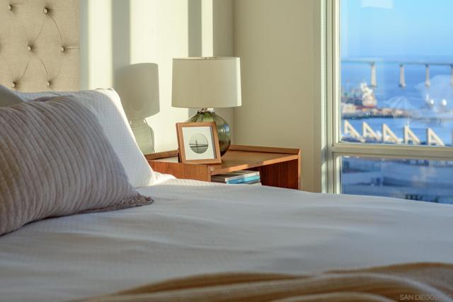 Located on the SW corner of the prestigious Executive 18th floor, this premier 2-bed, 2.5-bath residence at The Pinnacle Marina Tower showcases breathtaking sit-down views spanning the San Diego Bay and Pacific Ocean. Expansive 10+ foot ceilings, elegant marble floors, and dramatic floor-to-ceiling windows flood the open-concept interior with natural light, perfectly framing the ever-changing coastal panorama. The chef’s kitchen features Sub-Zero and Bosch appliances, sleek Snaidero Italian cabinetry, wine cooler, and refined finishes throughout. Two private balconies offer ideal vantage points for spectacular views of the ocean and city- perfect for morning coffee at sunrise and evening sunsets. The combination of floor plan, elevation, and southwest orientation is among the most desirable in all Downtown San Diego—and rarely becomes available. Situated in the heart of the Marina District, The Pinnacle delivers an unmatched urban coastal lifestyle surrounded by San Diego’s most iconic destinations. Just moments away are Waterfront Park, Seaport Village, The Headquarters at Seaport, and the Rady Shell at Jacobs Park—home to world-class performances by the San Diego Symphony. Nearby you will also find The Gaslamp Quarter, Little Italy, and Petco Park – perfect for dining, shopping, nightlife, and entertainment. Residents enjoy a full suite of resort-style amenities including 24-hour concierge and security, a state-of-the-art fitness center with steam room and sauna, heated Olympic-style pool and jacuzzi, guest suite, social lounge, conference room, and an outdoor BBQ area. Complete with two secured parking spaces and additional storage, this exceptional residence offers a rare blend of luxury, convenience, and refined Downtown sophistication.