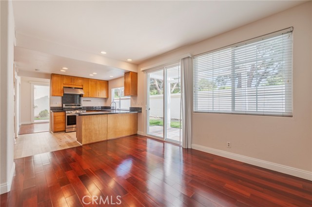 Elegant detached home in a fantastic location. Featuring three bedrooms, two and one-half baths, two-car attached garage, and wrap-around yard with patio cover! SOARING VAULTED CEILINGS, both formal living and separate family areas, and convenient inside laundry room with storage cabinets. Upgraded kitchen features granite countertops, sit-up bar, stainless steel appliances, brand new gas cooking range high end cabinetry, and dry-foods pantry. Brand new Luxury vinyl installed in kitchen, stairway and all 3 bedrooms upstairs in 2025. Large master suite with vaulted ceilings, walk-in closet, and master bath with dual vanities and soaking tub. Zoned for IUSD schools and close to Westpark Elementary, neighborhood parks, pool, shopping, District, 405 Fwy.