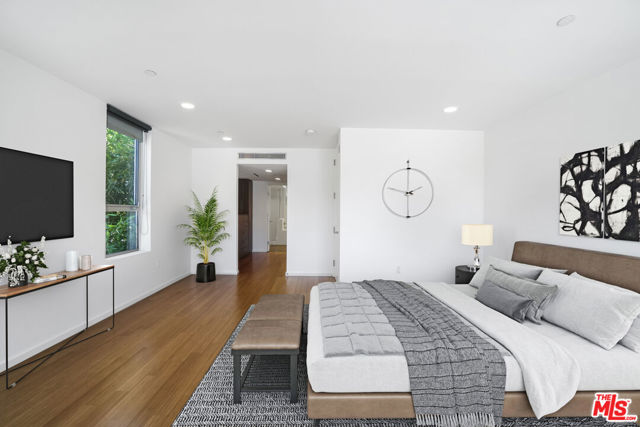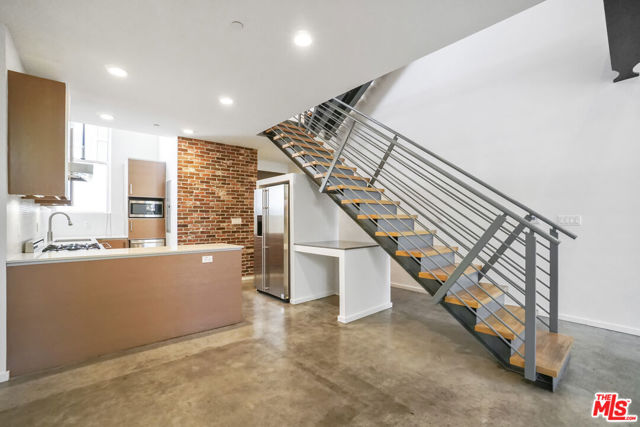 Architectural Corner Loft in West Hollywood Fairfax District. Multi-level with 20' ceilings and tons of windows, and only one common wall. Two bedrooms plus den and two and a half baths spread out over four levels and featuring two large balconies. Tons of closet space, designer baths, and kitchen. Small building with only 12 units and a short walk to Whole Foods, Laurel Hardware, Delilah, Isabel, and much more. Two assigned parking spaces underground with EV charger, guest parking, and a hot tub in the building. A rare find, and it won't last long.
