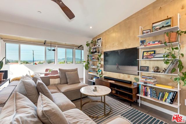 Perched in the historic hillside enclave of Glassell Park, this stand-alone residence captures sweeping views of the Observatory and surrounding hillsides. Designed with an industrial aesthetic and an open-concept layout, the home blends clean lines with effortless indoor-outdoor living. Tile floors span the entire length of the residence. In the enclosed sunroom, expansive windows bring the outdoors in, filling the space with natural light. The kitchen features a center island and stainless steel appliances, creating a functional and stylish hub for everyday living. Additional highlights include a stackable washer and dryer, a separate office workspace, off-street parking, and a sunken outdoor soaking tub with expansive views. Ideally located near Glassell Park's vibrant dining scene and entertainment options, this hillside retreat offers privacy and convenience in one of Northeast LA's most dynamic neighborhoods.