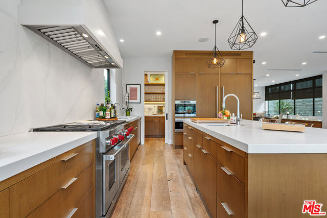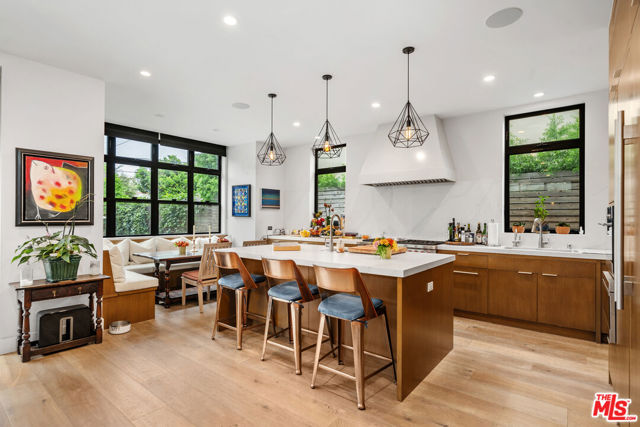 Earliest Showings would be 03/05 .Step into a beautiful contemporary designed home perfect for the family who values neighborhood community within the bustling city of LA. Amazing treetop views with mature trees in both the front and back yard create peace and serenity with hummingbirds, butterflies and sparrows flying around. Slide your feet across smooth, white oak hardwood floors as you open the all glass front door through a secured pathway lined by a cedar clad front gate (guests and visitors can be buzzed in by mobile app) to enter your new home. A wide two car driveway (RARE IN LA!) allows you to park both cars with ease outside or inside the garage -- it's up to you! Custom built in 2017, the house features 4 bedrooms and 4.5 bathrooms -- every bedroom has its own en suite bathroom. Tasteful best in class Wolf and Sub Zero kitchen appliances and a massive open living room and kitchen greet you every morning as you enjoy your coffee and get your kids ready for school on the expansive kitchen island. Breathe in deeply as you get your day started, with fresh air flowing from the nearly 10 foot ceilings on both floors and transoms creating a spacious, airy interior along with gorgeous Fleetwood doors and windows, allowing natural light to flood the home. There are also two balconies and more cabinet storage space than you will know what to do with. Did we mention that the master bathroom has a deep soaking tub? Time to buy more Turkish towels! No expenses were spared including Caesarstone countertops, customer cabinetry and built-ins inside every single bedroom as well as in the living room. Recessed lighting with dimmer switches add the ability to tune the mood to your liking. A Nest thermostat on each floor and two separate HVAC units create the special temperatures to your liking, depending on your whims. Security cameras envelope the exterior of the house. Walk into the backyard by completely opening up the accordion glass doors from wall to wall and fire up the grill by the pergola and enjoy the California indoor-outdoor lifestyle, relaxing on the patio under the moon and stars. Your children and their friends will be playing soccer on the grass, climbing the avocado trees to help make guacamole, blowing bubbles in the air or shooting baskets in the built-in basketball hoop with a see-through plexiglass backboard that can be lowered to 5 foot or raised to 10 foot regulation NBA/college/high school height. Yes, the basketball court has lights for your future NBA/WNBA player to practice free throws after the sun goes down! Walking distance to arguably the best elementary school in 90064 (Westwood Charter) and great dining options on Pico Blvd (the savory Hickory Burger at Apple Pan, anyone?!) as well as the world famous frozen yogurt shop Big Chill on Olympic. If you have a family and want to live in a safe, welcoming Westside community within the bustling metro of LA, then look no further. Washer and dryer provided by owner during lease period. Electric Vehicle charger in garage .
