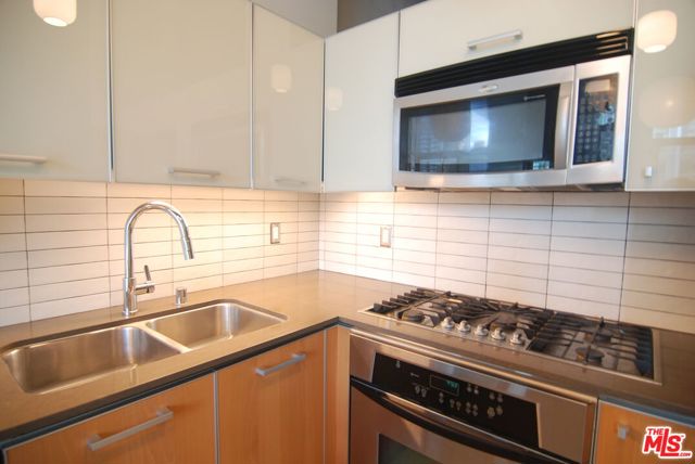 Remodeled Top Floor gem in the heart of South Park at Market Lofts! This bright and open east facing PENTHOUSE loft home showcases 12+ feet high ceilings, generously sized walk in closet, ample storage, amazing city views, & an abundance of natural light. This loft has it all - High ceilings, exposed ducts & pipes, new stone/slate floors, remodeled bathroom, accent lighting, sleek Italian cabinetry, Caeserstone countertops, stainless steel appliances, and washer + dryer combo. Amenities include pool, gym, screening room, private party room, BBQ area, 24 hour front desk security, in-building covered parking, and Amazon Locker for your deliveries. Walking distance to LA Live, FDIM, theaters, fine dining, upscale entertainment, Financial and Fashion Districts. Conveniently located above Ralph's supermarket and just around the corner from Whole Foods. 1 assigned parking space included in attached and secure garage. Come live at Market Lofts and experience the burgeoning community of art, culture, and entertainment in downtown. Parking, Water, Trash & Gas included with rent. Tenant pays electricity + Internet.