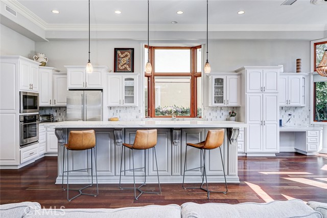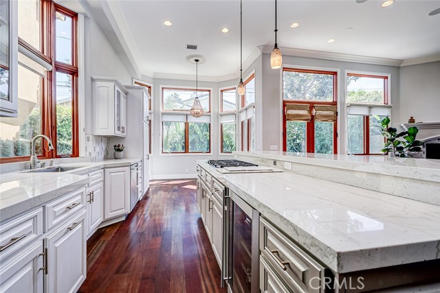 Beautiful custom French Country style home on a quiet street in the Tree Section of Manhattan Beach. Built in 2006, this 4-bedroom, 3-bathroom home offers nearly 3000 square feet of beautifully designed living space, blending clean modern lines, warm textures, and coastal charm. New central A/C. Floor plan includes a first floor bedroom, second-floor primary suite and two more large upstairs bedrooms, sharing a Jack-and-Jill bath. The center of the home is its large great room in back, with a huge, open kitchen opening out the family room and tidy, low-maintenance backyard. The chef's kitchen is built for gathering, featuring an oversized 12' X 5' Quartzite island with seating for six. Throughout, the home feels open and airy, with wide Brazilian Cherry flooring, super high ceilings, and natural light streaming through oversized windows. Large bi-fold doors enhance indoor-outdoor flow, opening to a private backyard with a large Pennsylvania Bluestone patio. Upstairs, the airy primary suite is a calming escape, featuring vaulted ceilings, a spa-like bath with soaking tub, dual vanities, walk-in shower, and a spacious custom closet. Additional highlights include dual-zone cooling and heating, three walk-in closets, two balconies and lush landscaping. A full laundry room is also located downstairs off the kitchen. Just minutes from award-winning schools, parks, greenbelt trails, shops, and world-class beaches, this home captures the essence of modern coastal living in Manhattan Beach. UNFURNISHED rental, AVAILABLE TO START MAY 1, 2026, A 14-MONTH OR GREATER TERM IS PREFERRED. SMALL PETS CONSIDERED.