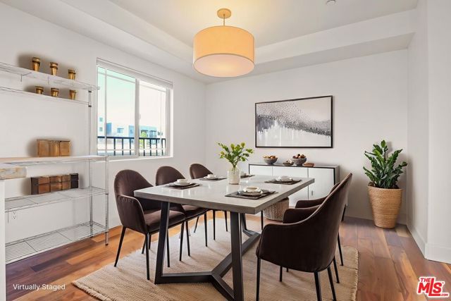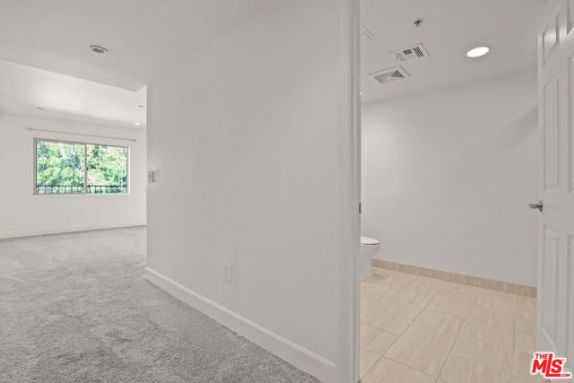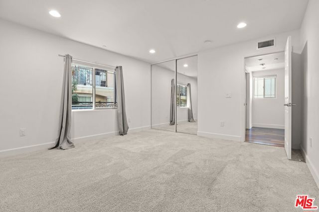 This beautifully updated 1,165 sq. ft. corner condominium offers two bedrooms and two bathrooms on a single level, with windows on three sides that fill the home with natural light and showcase open views. Built in 2011 and meticulously maintained, the residence combines modern upgrades with everyday comfort. The open-concept living and dining area features engineered walnut wood flooring and expansive windows that create a bright, airy atmosphere. The stylish kitchen is equipped with granite countertops, crisp white cabinetry, and premium appliances, including a Thermador professional range and dishwasher, a Bosch refrigerator with Thermador handles, and in-unit washer/dryer. Updated plumbing fixtures, contemporary hardware, full-spectrum recessed lighting, ECOS non-toxic paint, and cellular window shades add thoughtful finishing touches throughout. Designed for privacy, the two generously sized bedrooms are positioned on opposite sides of the unit. The primary suite enjoys peaceful tree and sky views and includes an en-suite bath with a large soaking tub. A second full bathroom in the hallway also features a soaking tub. Additional highlights include a private balcony with treetop views, a tankless water heater, and two tandem parking spaces in the street-level garage with convenient access to the building's elevators and stairwells. Ideally situated in Valley Village, the property offers easy access to the 101 and 170 freeways, parks, dining, shopping, and entertainment. Restaurants and supermarkets are within walking distance, making daily errands effortless. A wonderful opportunity to lease a well-appointed, newer condo in a prime location.
