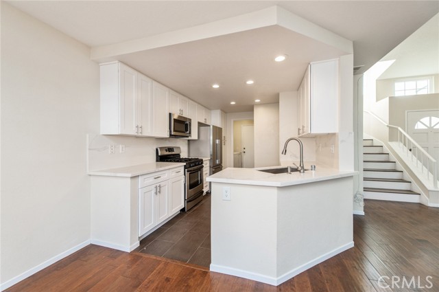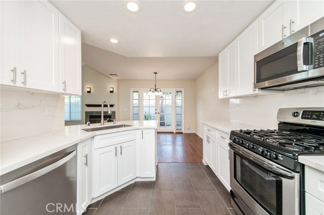 Beautiful 3 bedroom, 2.5 bath condo featuring an updated kitchen with white cabinetry and quartz countertops. Laminate wood flooring throughout the stairs and second floor. Enjoy a private back patio and a spacious two car garage with plenty of storage. Washer, dryer, and refrigerator are included.