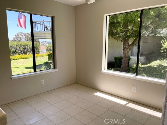 A LITTLE SLICE OF PARADISE.... This Baroness Model is the most popular floor plan in the Mallorca Community. With a circular flow to the kitchen and a nook that frequently doubles as an office space, this home features direct outside light in both bathrooms, a 2 car detached garage and a large rear patio with a panoramic view of Mountains, Hills, City Lights and a peak of both Lake Mission Viejo and the North Beach Facility accessed by sliding doors from the Living Room and the Dining Room. Wood themed, laminate flooring in the Entry, Living Room, Dining Room, Hallways, Guest Bedroom, Master Bedroom and Master Dressing Area is complemented by oversized baseboards and a fresh, interior paint job to be applied after current tenant vacates the property. Textured ceilings and painted kitchen cabinets add to the list of cosmetically desirable features. The Mallorca Community provides a 24/7 manned gate, a private beach with an area designated for swimming only, 72 boat slips, a fishing dock, a loading dock, 2 fenced pool/spa areas and a picnic area with bar-b-q's, a cabana, picnic tables and restrooms. Membership to Lake Mission Viejo with its boat rentals, fireworks display and Summer Sunset Concert Series is included in the lease price.