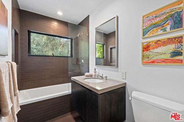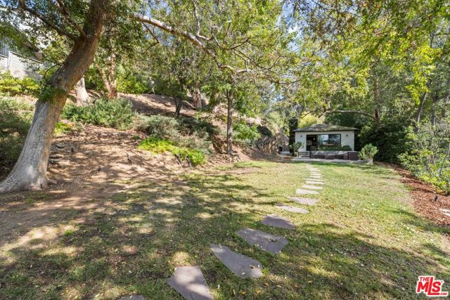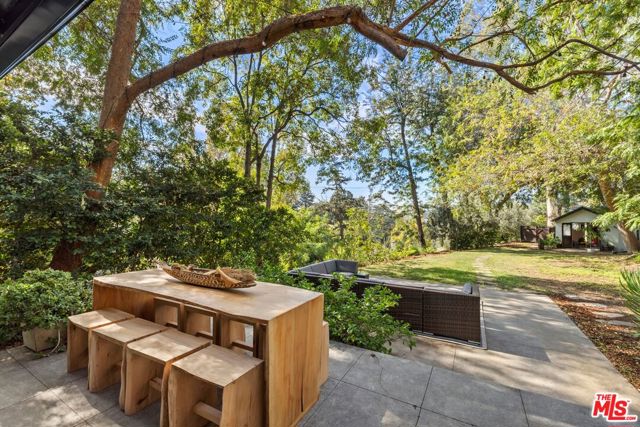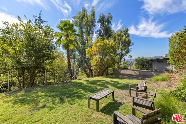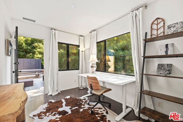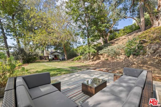 3 bedroom, 2 bath FURNISHED pied-a-terre, tucked away on a private street and nestled in the gated enclave of Valley Oak Drive. An incredible setting, with green treetop views. The interior features an open living/dining layout w/ sliding doors to a patio & yard. Kitchen offers stainless steel appliances and a center island. The primary suite with separate desk area and walk-in shower opens to a private patio and 2 additional bedrooms share a spacious bath. Stacked laundry closet. BONUS: Stand-alone separate office/guest bedroom attached to the two car garage. Plenty of guest parking. Incredible private haven - tailored for relaxation or work-from-home-retreat. So close to Los Feliz Village cafes, shops and Griffith Park trails, easily access to DTLA, yet enjoy a world of calm. A perfect package