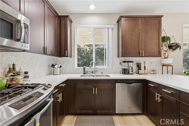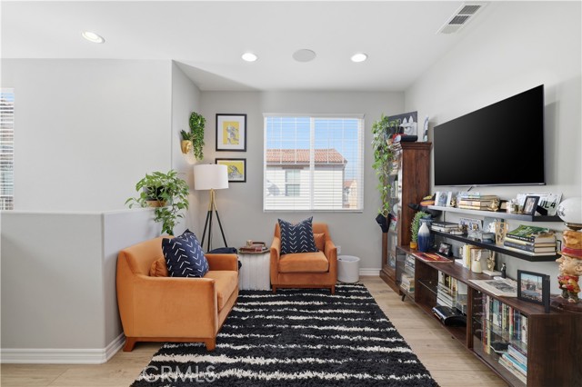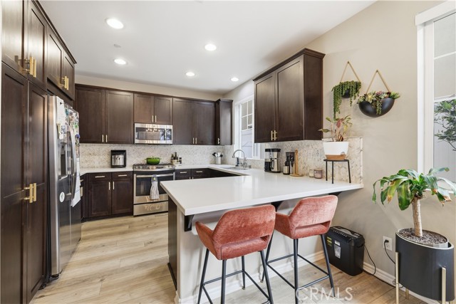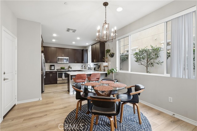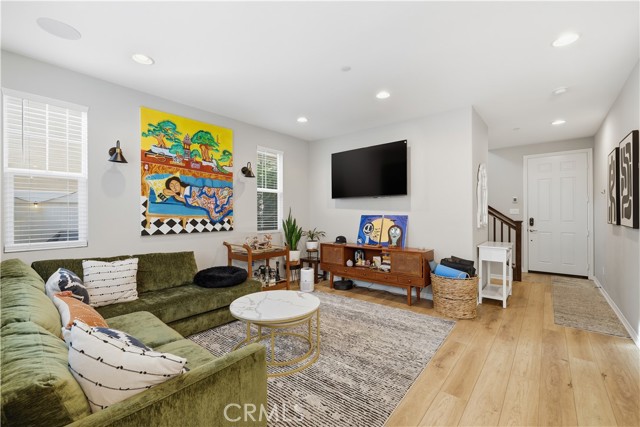 Welcome home to this warm and inviting retreat designed for both comfort and connection. From the moment you step inside, you'll appreciate the bright open floor plan that creates a seamless flow between living, dining, and kitchen spaces - perfect for everday living and effortless entertaining. At the heart of the homes is a true chef's kitchen, thoughtfully designed with abundant counter space, modern appliances, and ample cabinetry to inspire your inner culinary creativity. Whether you're hosting dinner parties or enjoying a quiet morning coffee, this kitchen delivers both style and function. Brand new flooring throughout adds a fresh, cohesive feel, while built-in speakers elevate the ambiance for movie nights, gatherings, or relaxing evenings at home. New solar panels keep utlilities real low (if any at all) and are transferable to the new owner. A versatile flex space offers endless possibilities ideal for a home office, playroom, workout area, or guest retreat. The attached 2-car garage provides added convenience, storage, and easy access year-round. Close to schools, parks, shopping, freeway access and fashion centers, you can sit in your secluded patio, and feel comfort in knowing this this private sanctuary is all yours.
