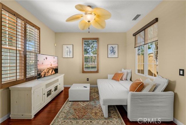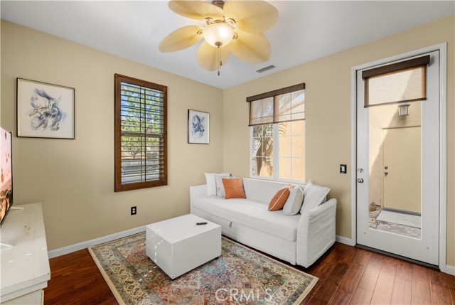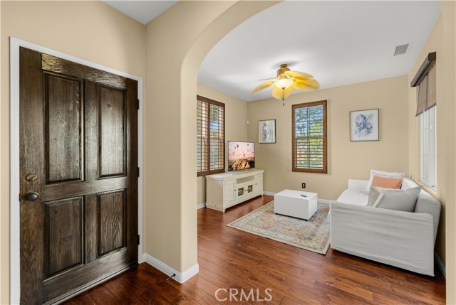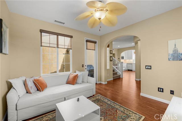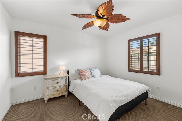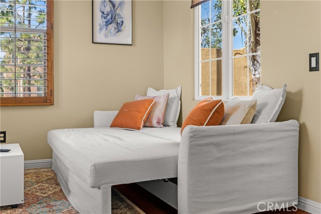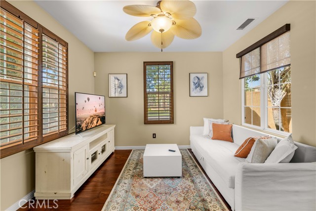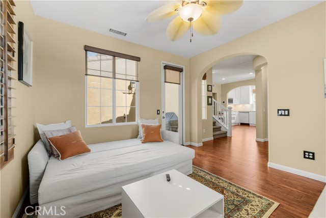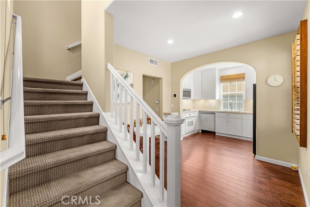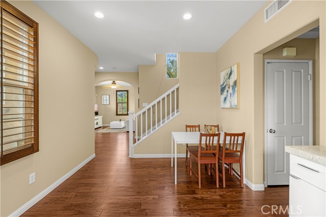 Currently furnished; furniture can be removed upon request. Open to negotiating a long-term lease. Beautiful Corner Lot Home with Dual Primary Suites in Woodbury, one of the most desirable communities in Irvine. Currently furnished; furniture can be removed upon request. Open to negotiating a long-term lease. This stunning corner lot home radiates pride of ownership throughout and offers an exceptional blend of comfort, style, and quality upgrades. Featuring two primary suites, each complete with full showers and a solar tube in the primary bath with built in night light and spacious walk-in closets. This thoughtfully remodeled residence provides the perfect balance of luxury and functionality with spectacular views of the corner lot from almost every room. The first floor showcases beautiful Acacia hardwood flooring, while the second floor is complimented by soft Berber carpet. The remodeled kitchen is a true showpiece, featuring quartz countertops with a full-height backsplash, high-gloss white laminate cabinets with premium hardware, LED under-cabinet lighting with adjustable color settings, and modern conveniences such as a pull-out trash system, Super Susan tray storage, double knife drawer, new Kohler pull-down gooseneck faucet, Kraus stainless steel sink with rounded corners, and high end Samsung Bespoke dishwasher, refrigerator and microwave. A large walk-in pantry is located just off the kitchen, offering ample storage space. Additional home features include ceiling fans, window treatments that include Bass wood shutters, roller shades and woven blinds. as well as PEX piping throughout, new water heater, Brondell bidet systems in both primary suites with Kohler showerheads, Kohler hardware throughout the home including all faucets with metal drains and downstairs bathroom has a comfort high Kohler toilet. The outdoor stone and pebble patio provides a peaceful, low-maintenance retreat complete with a gas BBQ outlet, Weber grill, and lush Triangle Palm and Ocotillo plants. Some of the energy-efficiencies include Milgard windows, fiberglass insulation between floors, and a roof equipped with a radiant heat barrier for added efficiency. This home truly combines thoughtful design, modern comfort, and timeless appeal—ready for you to move in and enjoy!