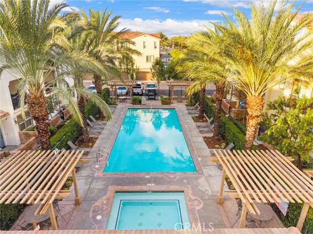 This home is leased unfurnished. Photos are for reference only. Conveniently located directly across from a plaza, providing easy access to shopping and daily necessities. Well-maintained three-story townhome located in the desirable Nexus Community. Functional layout with great natural light. The entry level features a versatile flex space ideal for an office or additional living area. The main level offers an open-concept living and kitchen area with granite countertops, maple cabinetry, and a center island, plus access to a covered patio/deck. The third floor includes a primary suite with a walk-in closet, dual sinks, and a separate shower, along with two additional bedrooms sharing a full bathroom. Community amenities include a swimming pool, spa, playground, and BBQ area. Convenient location close to major transportation. Move-in ready.