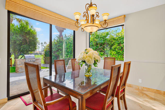 Fabulous home with gated parking plus golf course view! 4 bedrooms, 4 bathrooms, office and fairway view on the par 5 13th fairway. Double door leaded glass entry doors open to volume ceilings, walls of glass, a floor to ceiling stone fireplace, a convenient sit-down wet bar. The island kitchen has slab granite counters and stainless-steel appliances. Primary suite with walk in closet and sliders to the pool area has a large jacuzzi soaking tub and spacious separate shower. There are two-bedroom suites. Another bedroom has glass sliding doors to the pool and covered back patio. There is a built-in BBQ. This is an entertainer's delight! Two newer electric A/C systems. Owners include electricity, gas, water up to $200mo. Owners include cable TV with two boxes, Internet with Spectrum plus trash service. Electricity, gas, water is included up to $200.00 per month. Bermuda Dunes Country Club has 24-hour guard gate. 3-month minimum. Contact agent for more information.