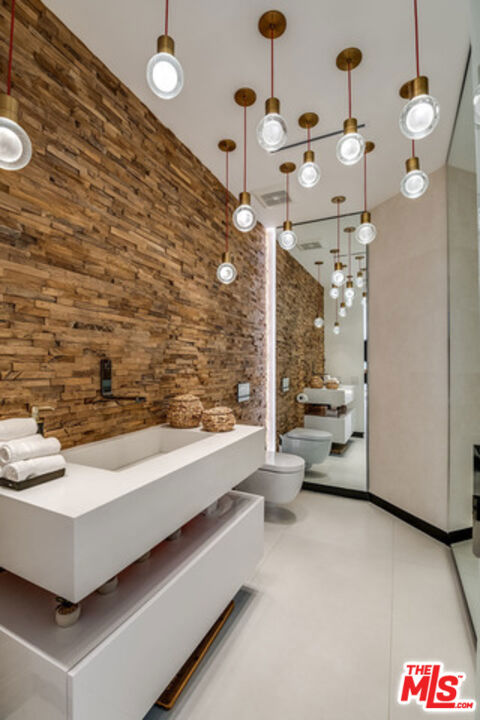 ***AVAILABLE FURNISHED OR UNFURNISHED***. The rarest of rare Trophy properties in the exclusive guard gated Mountain View Estates. Situated on a calm cul-de-sac, this Contemporary showpiece smart home boasts 4,800sqft of living space. Better than new without an expense spared, the significant attention to detail and custom finish work curated by owner/user makes this proper entertainers paradise with seamless style & design. Bringing indoor/outdoor living to the next tier, 18ft Fleetwood pocket doors open up to a massive zero-edge pool & spa with 3 waterfalls enclosed by beautiful wood decks, striking Date palms, double island outdoor kitchen, fire pit, and amphitheatre quality sound system. Master suite spans the rear of the home. Floating steel staircase, Italian porcelain floors, reclaimed wood accent walls & 3 gang LED fixtures. Spotlighting lounge space, fireplace, walk-in closets, and rose gold hardware/fixtures. Elegant Chef's kitchen equipped with Miele appliances, custom glass cabinetry & butcher block center island. Downstairs office and bedroom with full bath, 3 additional upstairs bedrooms and 2 baths Plus master suite round out this home!