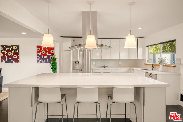 Perched on a quiet cul-de-sac, this serene three-story contemporary residence spans approximately 3,544 square feet and offers 6 bedrooms and 6.5bathrooms. Thoughtfully designed and filled with natural light, the expansive open-concept living and dining areas flow seamlessly into a sleek eat-in kitchen highlighted by an oversized center island. Walls of glass and sliding doors frame scenic vistas and open to a full-length balcony and a spacious, sun-drenched patio, creating an effortless indoor-outdoor lifestyle. The primary suite serves as a private retreat, featuring its own balcony, a soaking tub, separate shower, dual vanities, and an expansive walk-in closet. All bedrooms are located on the lower levels, most with their own en-suite bathroom, and most enjoy tranquil views. One bedroom and bathroom have been partitioned into a separate guest suite complete with its own kitchen, laundry, and private entrance, offering exceptional flexibility for visitors, extended family, or rental income. Additional highlights include an attached oversized two-car garage and a prime location with convenient access to Beverly Hills, the Valley, Coldwater Canyon, Mulholland Drive, and the City, offering the perfect balance of privacy, views, and connectivity.