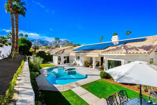 High-End Premium Seasonal Rental | South Palm Desert. Experience the best of the Coachella Valley in this stunning 3-bedroom, 2.5-bath solar-powered retreat, tucked away on a quiet cul-de-sac just moments from the world-class dining and shopping of El Paseo. Perfectly situated for guests attending the BNP Paribas Tennis Tournament and Stagecoach Music Festival, this home offers luxury, comfort, and effortless entertaining.Spanning 2,534 square feet, the residence features beautifully furnished French Moroccan-inspired living spaces designed for relaxing and gathering. The chef's kitchen is equipped with premium Wolf and Bosch appliances, custom carved cabinetry, generous prep space, a walk-in pantry, and a formal dining area ideal for hosting.Each bedroom is appointed with hotel-quality bedding and custom closet built-ins, while the spa-inspired primary suite boasts a freestanding soaking tub, oversized open shower with dual showerheads, and striking floor-to-ceiling tile. Expansive windows frame breathtaking mountain views and manicured grounds throughout.Step outside to your private backyard oasis, complete with a built-in pool and spa, multiple lounge areas, and automated shades--perfect for unwinding after a day at the tennis courts or dancing under the desert sky.Monthly rent includes weekly pool and gardening service, biweekly housekeeping, a three-car garage with Tesla charger, 64-bottle wine fridge, and a $350 monthly utility credit.Your desert escape awaits.Rental Conditions: 30 day minimal rental duration. *Seasonal (Nov. 15 - April 31) listed for $17,000. *Off-Season (May 1- Nov. 14) listed for $9,250. * Pool & Spa heating available upon request. Small to Medium Dog Permitted upon Specific Approval of Landlord. * $400 move-out clean paid by tenant. * Tenant must complete a rent-spree credit, criminal background screening application https://apply.link/uTfazYI