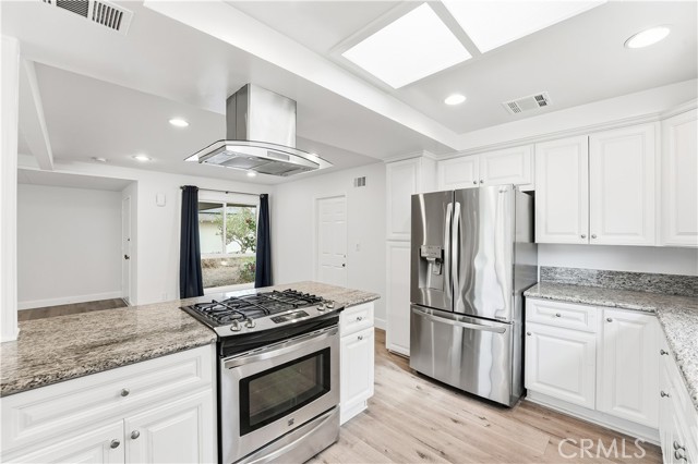 This expansive single-story home offers just over 1,500 square feet of beautifully updated living space, perfectly situated on a generously sized lot. Step inside to a bright and welcoming open floor plan featuring crisp white walls and modern flooring that create a fresh, contemporary feel throughout. The fully updated eat-in kitchen is designed for both style and function, complete with a breakfast bar, stainless-steel French door refrigerator, dishwasher, and gas stove — all included. The kitchen seamlessly overlooks the inviting living room, where a cozy gas fireplace creates the perfect gathering space. Your storage problems are solved with multiple closets and shelving lining the hallway leading to the bedrooms. The oversized primary suite is a private retreat overlooking the backyard, featuring a custom closet and an en-suite bathroom with a large step-in shower. Across the hall are the other two bedrooms and a convenient second bath with shower-over-tub. Enjoy effortless indoor/outdoor living under the backyard’s covered awning — ideal for relaxing or entertaining. With the attached two-car garage and included washer and dryer, this turnkey home is move-in ready and waiting to be yours! *There are plans to add a detached ADU in the backyard towards the end of 2026. Conveniently located near Chapman University, Old Towne Orange, and a wide variety of shopping and dining options. Easy access to the 55, 22, and 5 freeways making commuting a breeze.