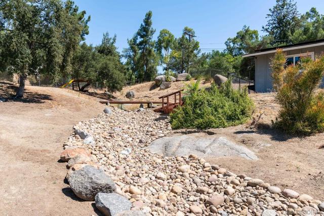 Welcome to this beautifully maintained single-level home nestled on over 1.3 acres of lush, gated land. You'll love the upgraded kitchen featuring a large island, modern cabinetry, and sleek stainless steel appliances. The open-concept design flows seamlessly into the inviting family room, complete with a cozy fireplace, making it the perfect space for gatherings. The bathrooms have been thoughtfully remodeled, adding to the overall elegance & comfort of the home. The entire property is in immaculate condition, showcasing pride of ownership throughout. Outside, enjoy the serene surroundings with gardens, play area, and fun pathways that lead to areas for exploration and relaxation. The covered patio is ideal for outdoor dining & entertaining, while the expansive lot offers ample room for additional parking, RVs, or other recreational toys. The property also features owned solar, ensuring energy efficiency, and a 2-car attached garage. This home is a perfect blend of comfort, privacy, and modern living with plenty of room to roam!