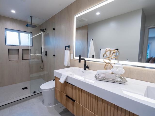 Monte Sereno perfection! This beautifully designed home offers 3 spacious bedrooms and 3 refined bathrooms, perfect for comfortable living. The open-concept layout is flooded with natural light, showcasing a sleek, modern kitchen with top-tier appliances and elegant finishes. Step out onto a welcoming deck that overlooks a serene pool area and a meticulously landscaped backyard, ideal for entertaining or quiet evenings. The outdoor seating areas and the side yard offer peaceful retreats. A long driveway leads to a two-car garage, with ample parking space for a boat, RV, or jet ski. Located in a top-rated school district and a serene neighborhood, this home blends luxury, practicality, and an unbeatable lifestyle. Dont miss this rare gem!