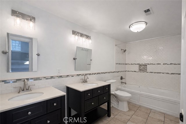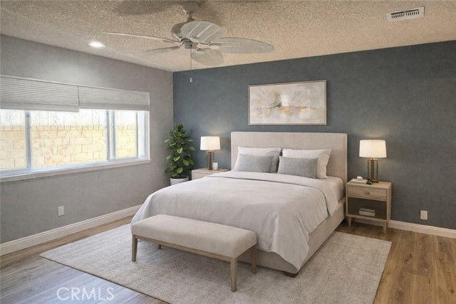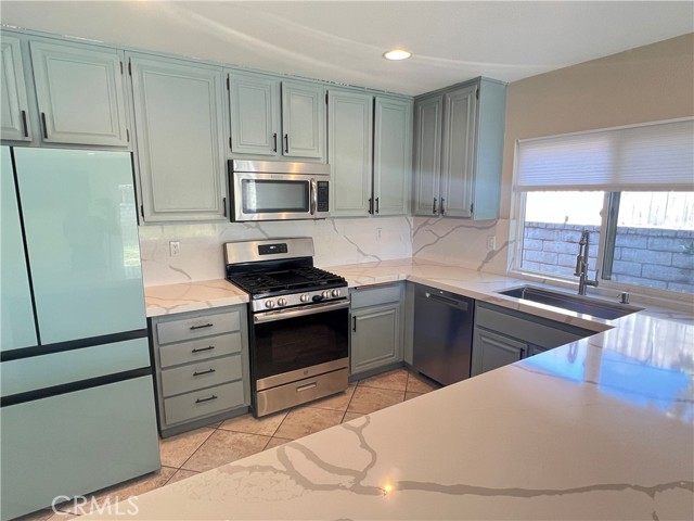 Located in a cul-de-sac in the desirable South Valencia area, this beautifully updated single-story home offers comfort, privacy, and an exceptional neighborhood lifestyle. Step inside to soaring vaulted ceilings, luxury vinyl plank flooring throughout, recessed lighting, and a welcoming living room with fireplace that creates a warm yet open feel. The remodeled kitchen features stainless steel appliances, quartz countertops, an oversized sink, custom tile work, and a large breakfast bar that flows seamlessly into the main living space. The spacious primary suite includes dual sinks, upgraded quartz countertops, and a relaxing jetted tub, while the hall bathroom has been tastefully updated with custom tile work. Ceiling fans in every bedroom, dual-pane windows, and a tankless water heater enhance both comfort and energy efficiency. Enjoy outdoor living with a private gated front courtyard and an enclosed backyard with grass, ideal for relaxing or entertaining. Additional features include a two-car garage with opener and washer and dryer included. Situated near award-winning schools, neighborhood parks, the Valencia paseo trail system, Town Center shopping and dining, and convenient freeway access, this home offers the best of Valencia living in a peaceful residential setting.No pets. No smoking. Good credit required.