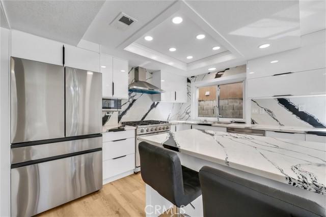 Marvelous home with 4 bedrooms and 2 1/2 baths in the desirable Chino Hills community. This stunning home includes a plethora of upgrades including New Flooring, Freshly Painted Interior & Exterior, New Light Fixtures throughout the home, and Remodeled Kitchen and Bathrooms. When you enter the home, you’re greeted with High Ceilings in the spacious Living Room accompanied by a cozy tiled fireplace. To the left you’ll find a Formal Dining Room. As you walk further into the home, you will find a Bright and Open Kitchen. It features new Modern Cabinets, and an Opulent Quartz Countertop & Backsplash that harmonize perfectly with the Brand-New Luxury Stainless Steel Appliances. All brand new appliances include 6-Burner Range, Range Hood, Dishwasher, Refrigerator, and Automatic Faucet. The huge Quartz Kitchen Island provides ample seating for the whole family. This kitchen was built to maximize cabinet and countertop space. Downstairs, you’ll also find a Remodeled Powder Room with new luxuriously tiled walls, vanity, mirror and light fixtures. As you walk upstairs, you’ll find 4 Spacious Bedrooms and a Hallway Bathroom. Hallway Bathroom spotlight new tiled walls, shower head and glass sliding door. Primary Suite includes tons of Closet space. Upgraded Primary Suite Bathroom includes new vanity, marble-like Tiled walls, shower heads, and Glass sliding door. Hard-scaped Backyard designed for relaxation and minimal upkeep. Additional upgrades include redone Window frames for a modern look. Attached and Direct-access 2-car Garage. NO HOA! Easy access to 71 FWY. Very close distance to Local Schools, Parks, Shopping Centers, and Restaurants.