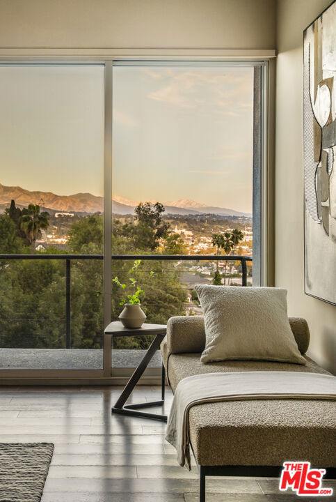 Set along a quiet hillside street in Los Feliz, 3625 Lowry unfolds as a series of light-filled spaces oriented toward expansive city and mountain views. Designed by architect Steven Hill, the home reflects a contemporary approach to volume, light, and indoor outdoor connection. Oversized windows and sliding glass doors frame the landscape throughout, while multiple terraces extend the living areas into mature greenery. Travertine flooring grounds the main living spaces, adding warmth and material continuity. A private outdoor observation deck captures sweeping views and creates a distinct space for gathering or quiet retreat. The primary suite is generously scaled and includes a fireplace, balcony, and a spa-like bathroom with a soaking tub, giant shower with textured stone wall, and dual floating vanity. Interiors balance warmth and restraint. Wood flooring, clean-lined millwork, and stone surfaces carry through the kitchen and bathrooms. A generous walk-in closet and flexible secondary rooms provide both functionality and adaptability. Outside, terraced grounds and elevated decks create additional areas for dining and lounging beneath established trees. Moments from Griffith Park, the Griffith Observatory, and the shops and cafs of Los Feliz Village, the home offers a serene hillside setting with immediate access to some of the neighborhood's most defining landmarks.