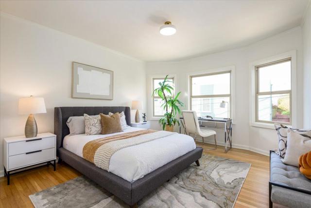 This fine blend of timeless and charming Spanish Revival, circa 1925, shines in this Bernal Heights', detached St. Mary's Park home. Beautiful Bay window, built-in bookshelves, original built-in buffet, and new fireplace facade. Hardwood floors with inlay design, detailed crown moldings, elevated ceilings. Spacious living room and dining room, updated kitchen with expansive pantry. Down the hall is a full bath with separate tub, shower and two large sunny bedrooms. Steps down to the large open space with porcelain counters, new flooring, updated half bath and inviting family room. Beautiful new primary suite w/ access to the backyard. Laundry room with new washer, dryer and epoxy floors. Updated garage with finished walls and epoxy floors. New front and back landscaping w/ drought-tolerant plants, redwood serving counter and firepit makes for a great entertaining space. This home is located on the desirable landscaped center boulevard that gives a sense of open space with ease of parking. Stroll to St. Mary's Park Rec Center and enjoy the playground and other fun amenities with public transportation close by. This convenient location offers a quick access to shopping, downtown San Francisco, the Glen Park BART station, HWY 101 & 280.