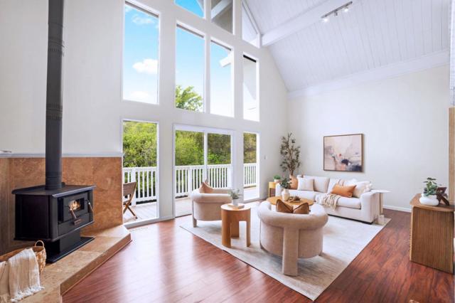 Soaring Glass Walls and Oak-Framed Serenity in Belmont's Wooded Hills // Nestled in the hills of Belmont's Cipriani neighborhood, this updated and well-maintained home captures the essence of tranquil contemporary living. This 3bd/2ba, invites nature in with its soaring two-story wall of glass that draws in abundant natural light while framing views of mature oaks, hillside greenery, colorful birds, neighborhood deer, and a peaceful nocturnal soundscape from the parliament of nearby owls. The open floor plan on the main level seamlessly blends the living & dining/kitchen areas to create a flowy family space that feels expansive, yet cozy & connected. Other standouts include:updated kitchen & baths, wood-burning stove, air conditioning, well-appointed primary bedroom w/ outdoor lounging deck, loft space w/ epic views, newer retaining walls,& a private multi-tiered yard perfect for gardening, lazy Sunday hammocking, & hosting gatherings with friends.The Sugarloaf trail system, Waterdog Lake, & the Carlmont Village Shopping Center are just moments from your front door, offering hiking, shopping, restaurants, & specialty stores.Nearby Cipriani Park, top-rated school system, and easy commute to 280/101 and SFO International Airport make this the perfect oasis to call home.