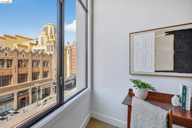 In the 1920s, as the neon of the Fox Theater and Paramount Theatre lit up Uptown’s skyline, 1755 Broadway stood at the center of Oakland’s most electric nights. Today, that same address offers a refined, design-forward 2 bedroom, 2 bathroom residence in the very heart of the city. Unit 45 blends historic character with modern sophistication, featuring soaring ceilings, dramatic commercial height windows, motorized shades, and a sleek gourmet kitchen with stainless steel appliances and granite countertops. The newly-renovated primary suite showcases a spa-inspired glass enclosed shower, while the spacious second bath includes a deep soaking tub. Newly installed AC and heat split systems provide year-round comfort. Secure garage parking, elevator access, and professional management enhance everyday ease. With 19th Street BART just three minutes away, San Francisco, Berkeley, and beyond are within effortless reach. For the buyer who wants style, energy, and seamless access to dining, nightlife, culture, and transit, 1755 Broadway places you directly in the pulse of Uptown Oakland. HOA includes Google Fiber internet, water, garbage, designated under-ground parking space, common area maintenance. Building has been retrofitted.